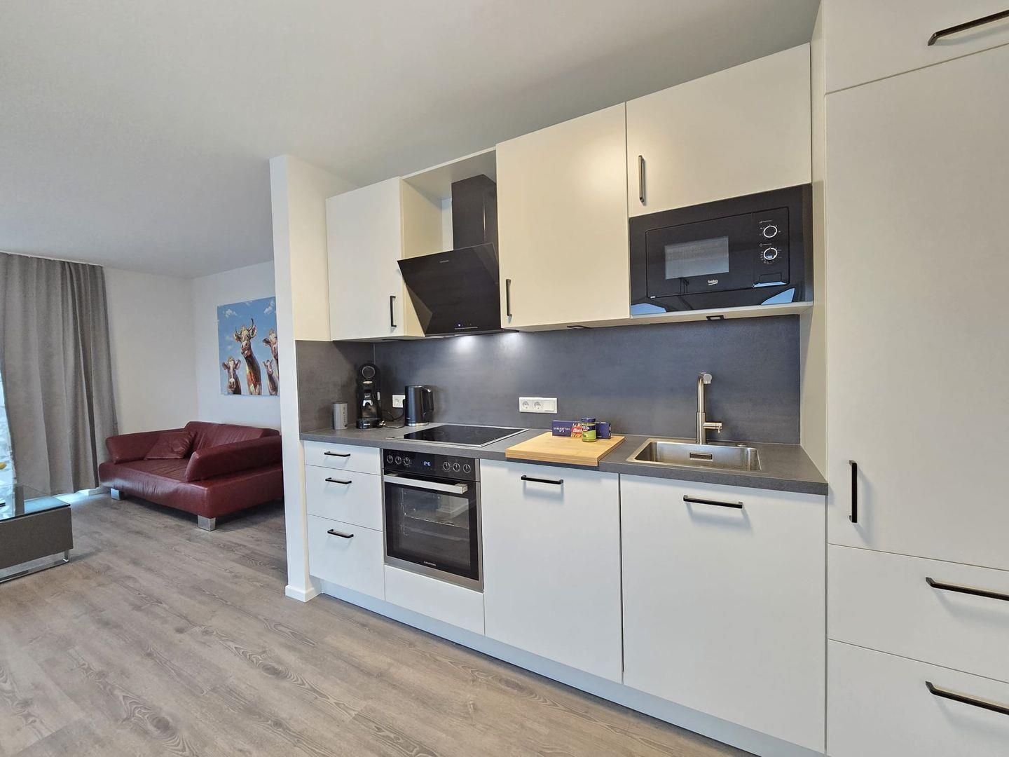 Die voll ausgestattete Küche ermöglicht Ihnen eine flexible und komfortable Selbstverpflegung. Herd, Backofen, Geschirrspüler, Kühlschrank und Kaffeemaschine stehen bereit, sodass Sie auch im Urlaub nicht auf gewohnten Komfort verzichten müssen.