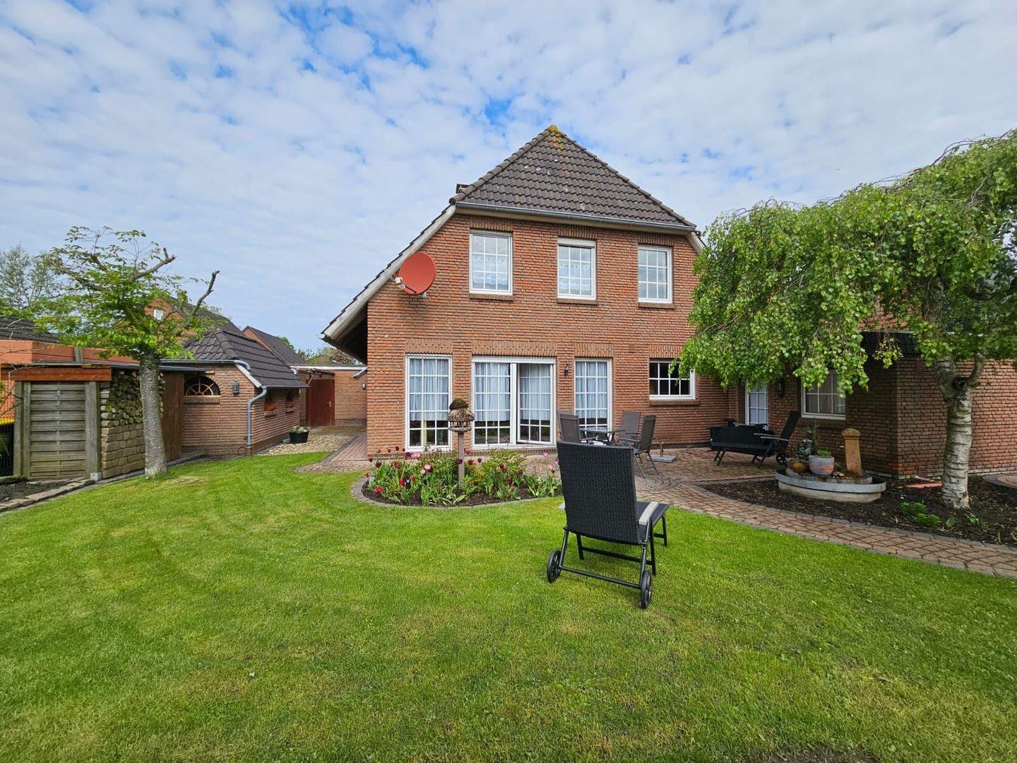 Terrasse & Garten: Große Terrasse mit Gartenmöbeln und angrenzender Gartenbereich – perfekt für entspannte Stunden an der frischen Nordseeluft.