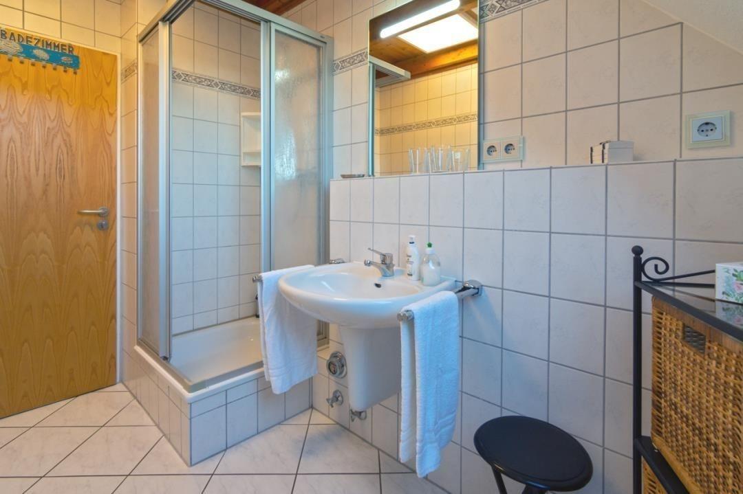 Das Badezimmer bietet Ihnen neben einem Tageslichtfenster auch eine Dusche, WC, Föhn und eine zeitgemäße Waschbeckenkombination. Zahlreiche Ablagemöglichkeiten sorgen für weiteren Komfort im Bad.