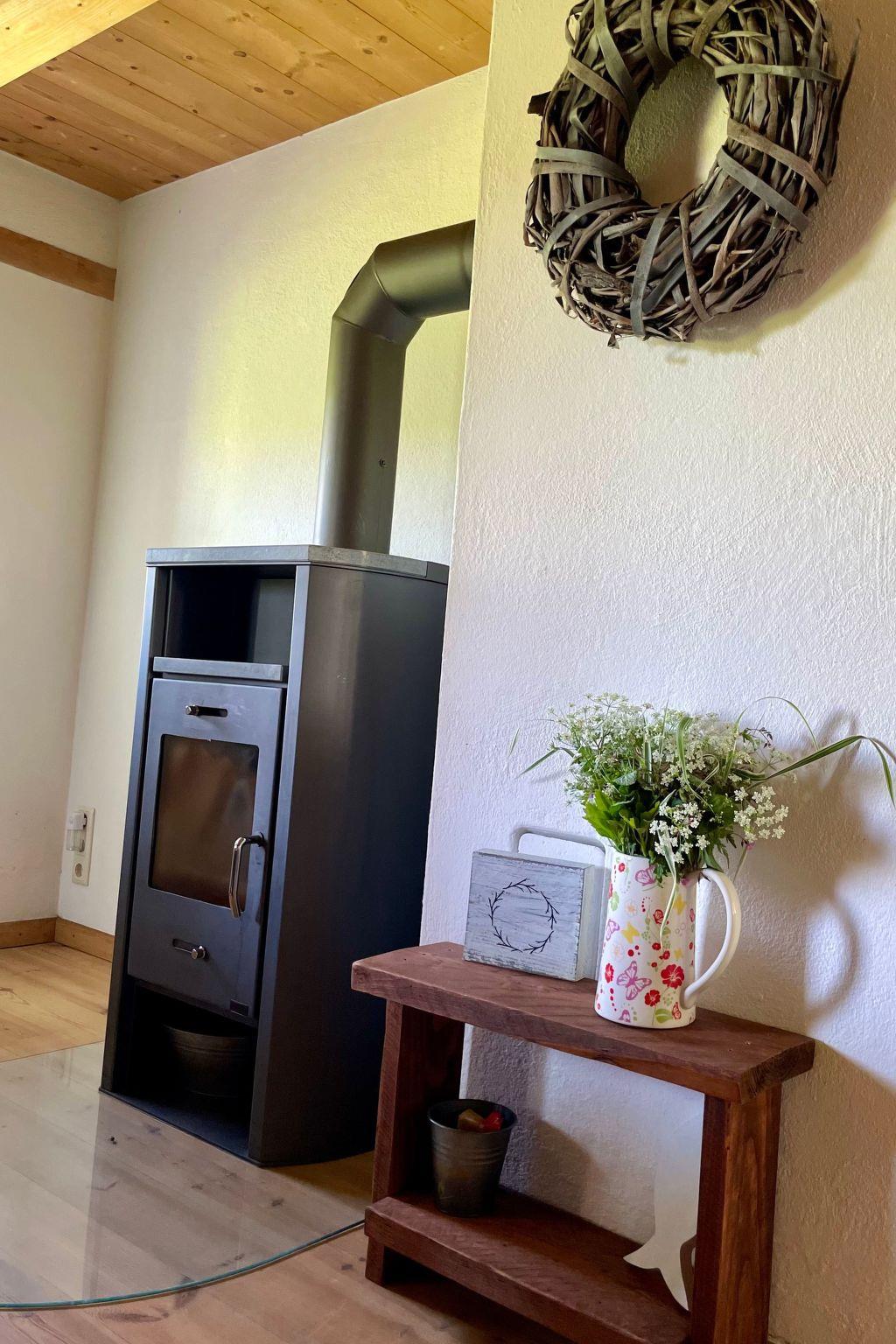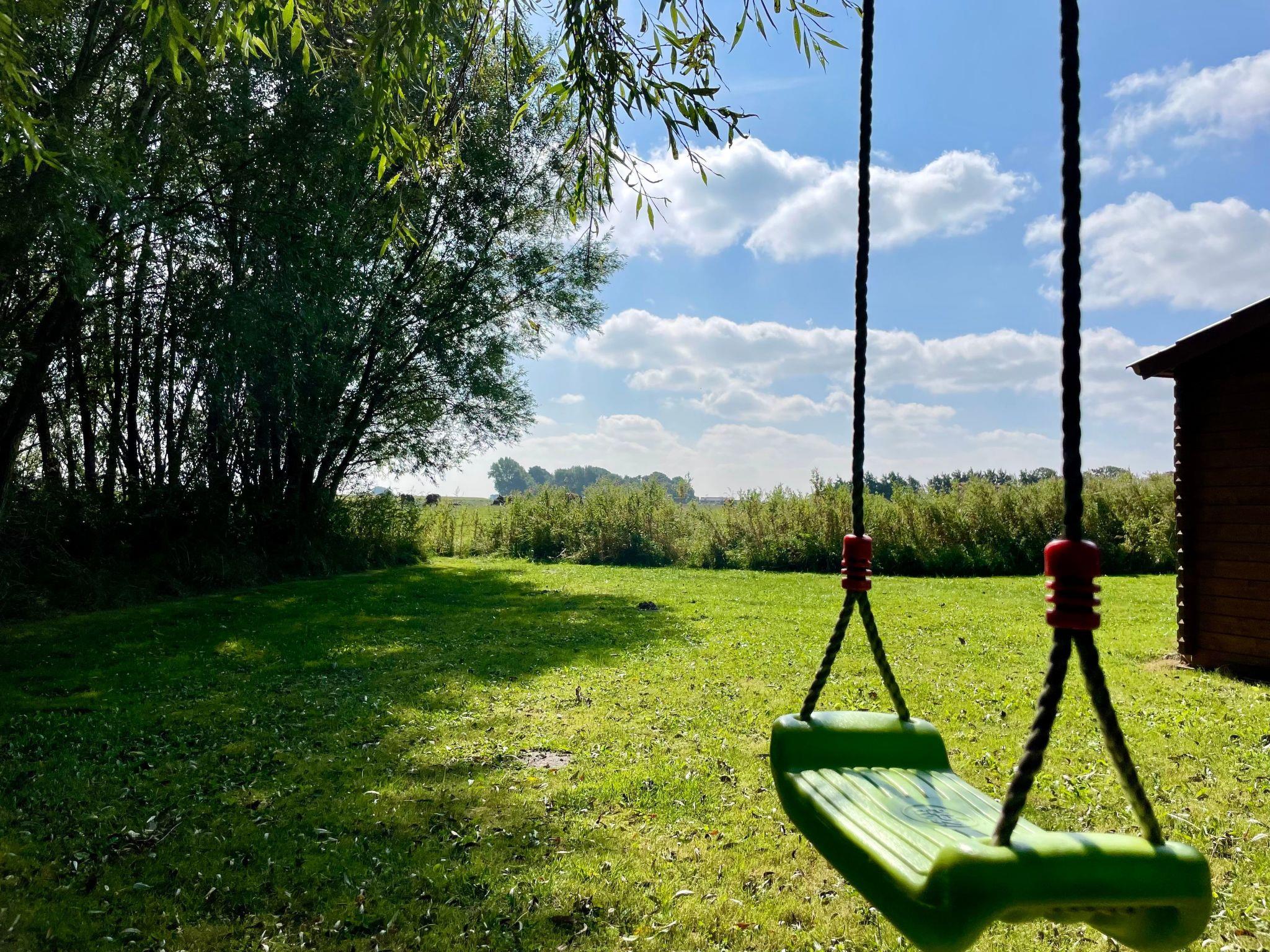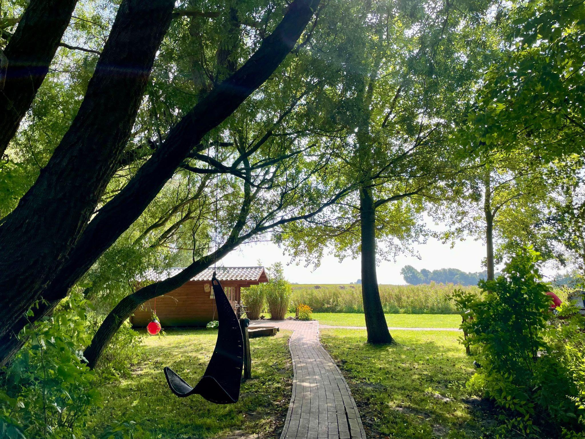 The large garden with mature trees, terraces facing the countryside and the water, as well as a wooden shed, and the large site with, invite you to spend time outdoors. Sun loungers, a parasol, garden tables and chairs are provided. Children will find plenty of space to play, climb and explore (e.g. play football or in the sandpit with toys next to the terrace), or you can enjoy the breeze on one of our tree swings.