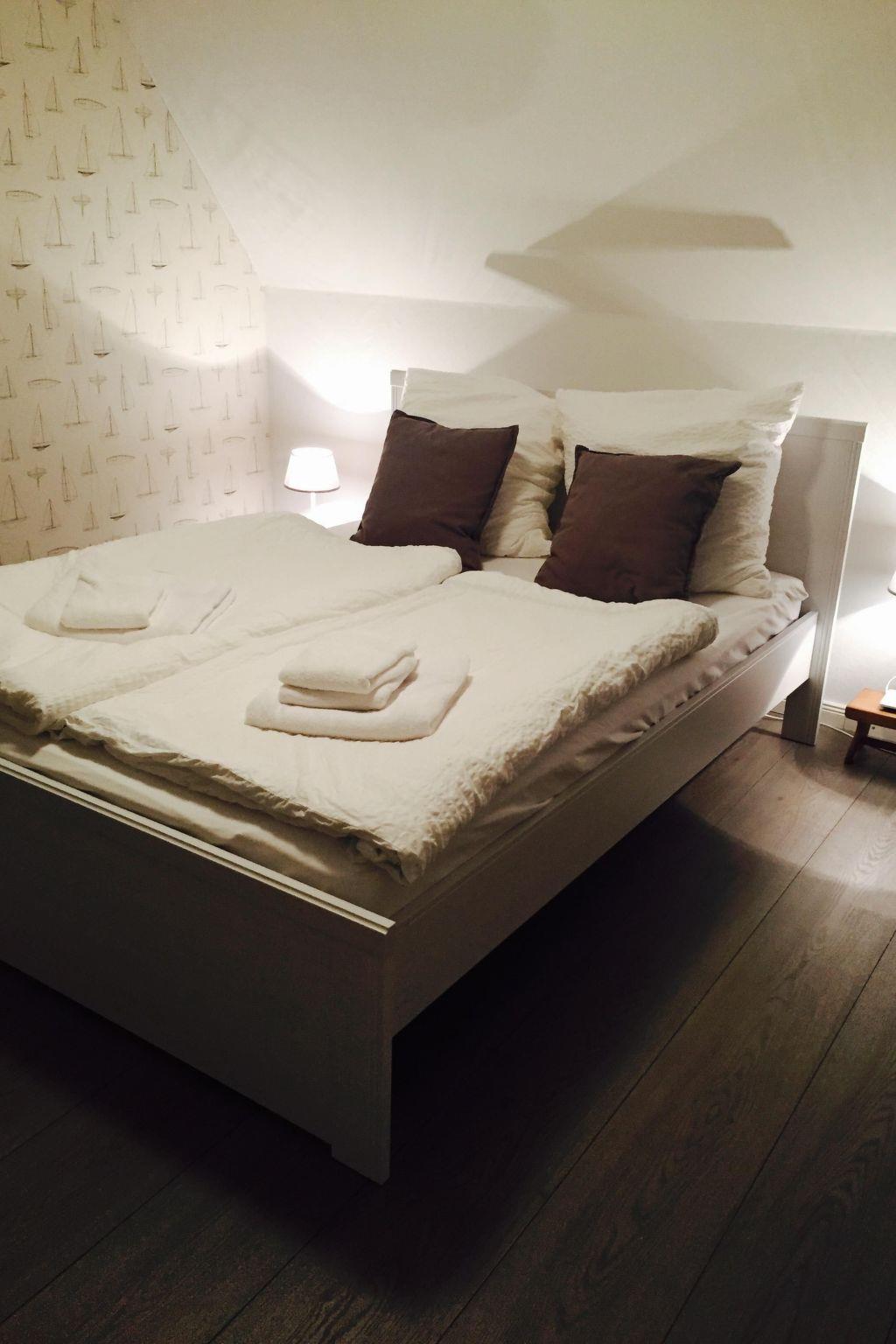 A charmingly furnished little house awaits you. The ground floor has a little built-in kitchen (stove, fridge, dishwasher etc.) with an adjoining living and dining room. There is a bathroom with a shower and a guest WC. the upper floor comprises a bedroom with a double bed (140 x 200cm) and a small bedroom with a bunk bed (100 x 200cm), so four people can be accommodated, with a further bed available in the living room. Wireless Internet access is provided.