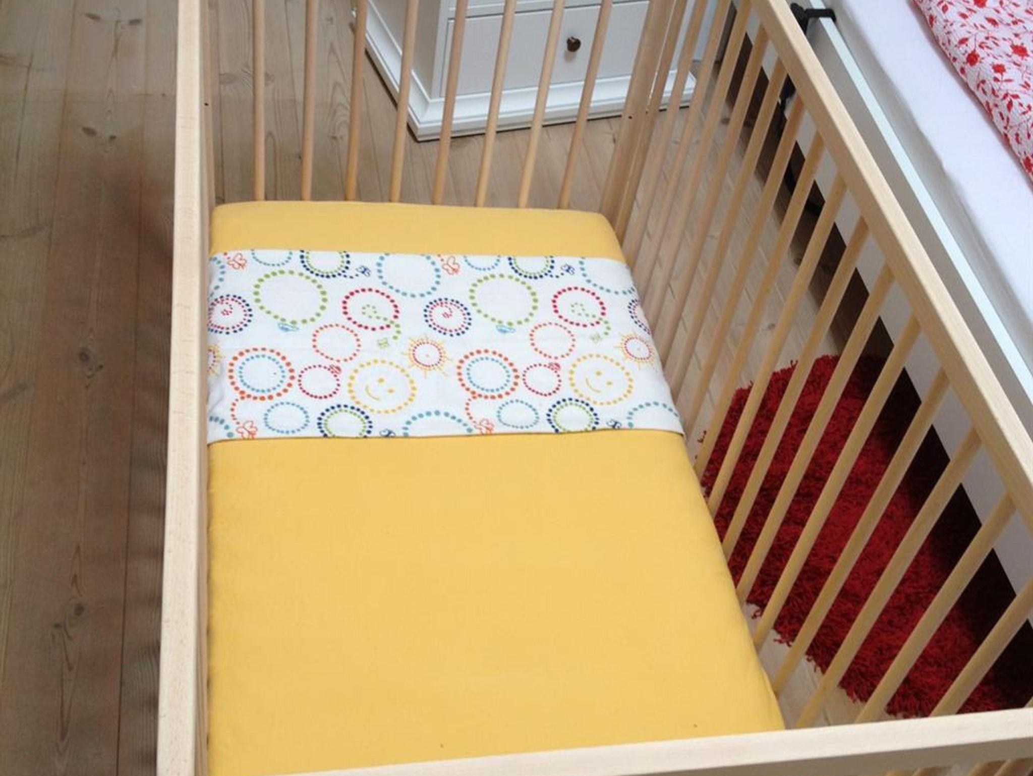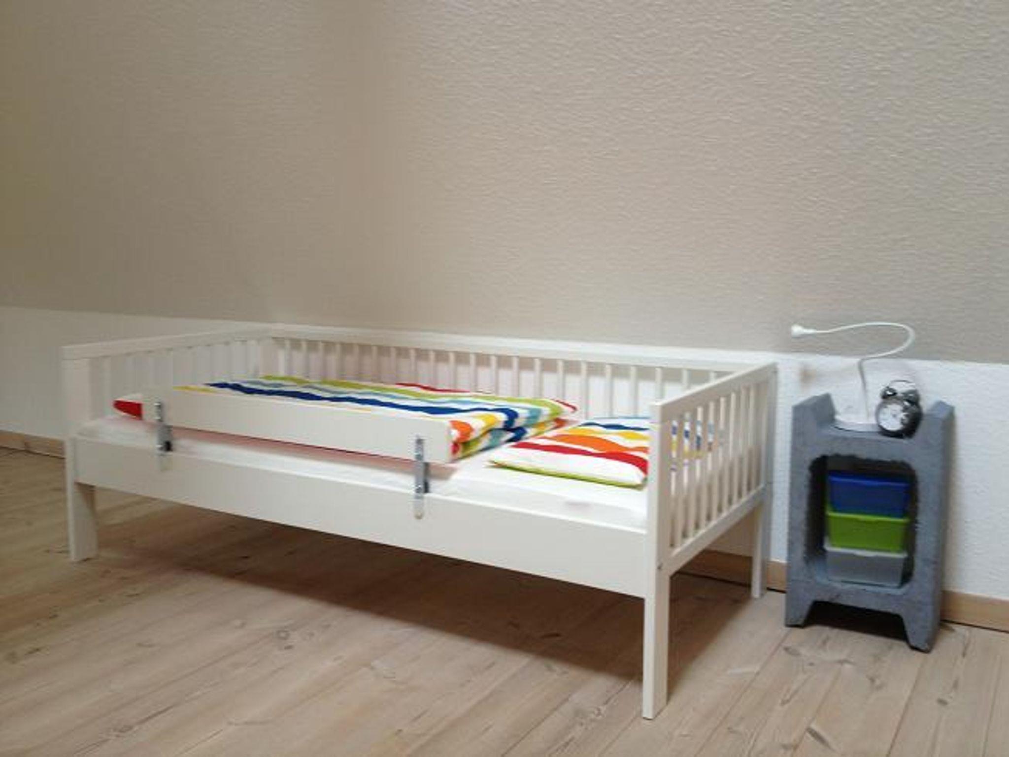 Ausstattung der Schlafräume: 1 Schlafraum mit einem Doppelbett ohne Fußende (2,00 x 2,00 m) und einem Kinderbett (1,60 m x 0,70 m) und