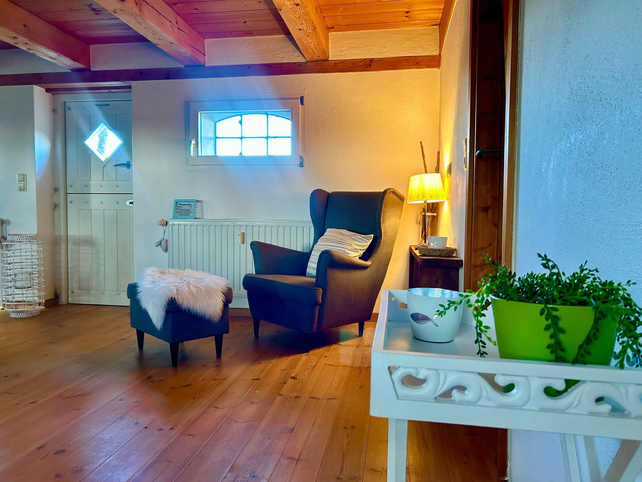 Unsere Reetdachkate bietet Platz für 4 Erwachsene, 1 Kind (Kinderbett) und 1 Kleinkind (Babybett + Hochstuhl).