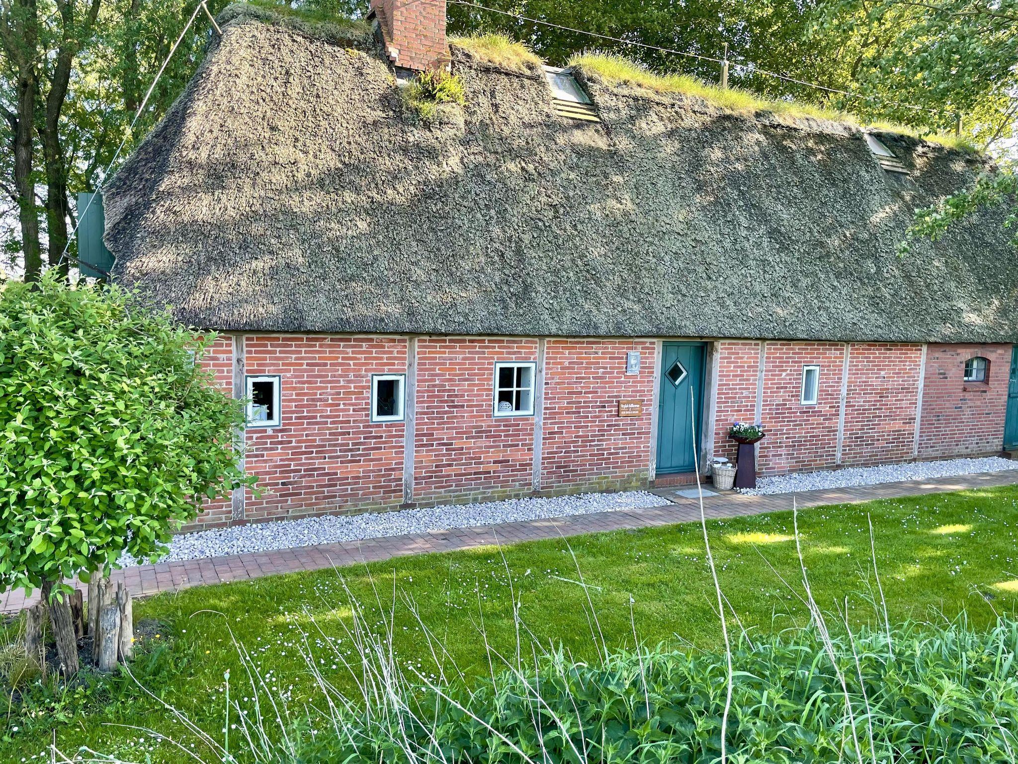 Herzlich Willkommen Erleben Sie in unserem Ferienhaus - ausgezeichnet mit 4 Sternen - einen unvergesslichen Urlaub! Genießen Sie die ruhige Alleinlage am Deich - 500 Meter von der Nordsee entfernt. Unsere helle Reetdachkate bietet Ihnen auf zwei Ebenen und über 120 m² Platz zum Erholen und um sich mit der Familie Wohlzufühlen. Die Gartenanlage mit dem alten Baumbestand, Terassen zu Land und zu Wasser, sowie ein Holzhaus und das große Grundstück laden zum verweilen ein. Für unsere kleinen Gäste bietet der alte Baumbestand eine tolle Kletter- und Entdeckerzone. Auf den großen Rasenflächen kann nach Herzenslust getobt werden. Neben einer Sandkiste mit Sandspielzeug findet man aber auch tolle Baumschaukeln.