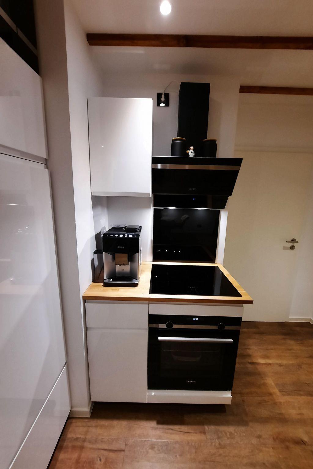 The kitchen is equipped with all the necessary utensils such as induction hob, dishwasher, extractor bonnet, microwave, fridge incl. freezer compartment, kettle, waffle iron, electric hand blender, toaster, fully automatic coffee machine, oven etc. Appliances are from Siemens. Appliances are from Siemens.
