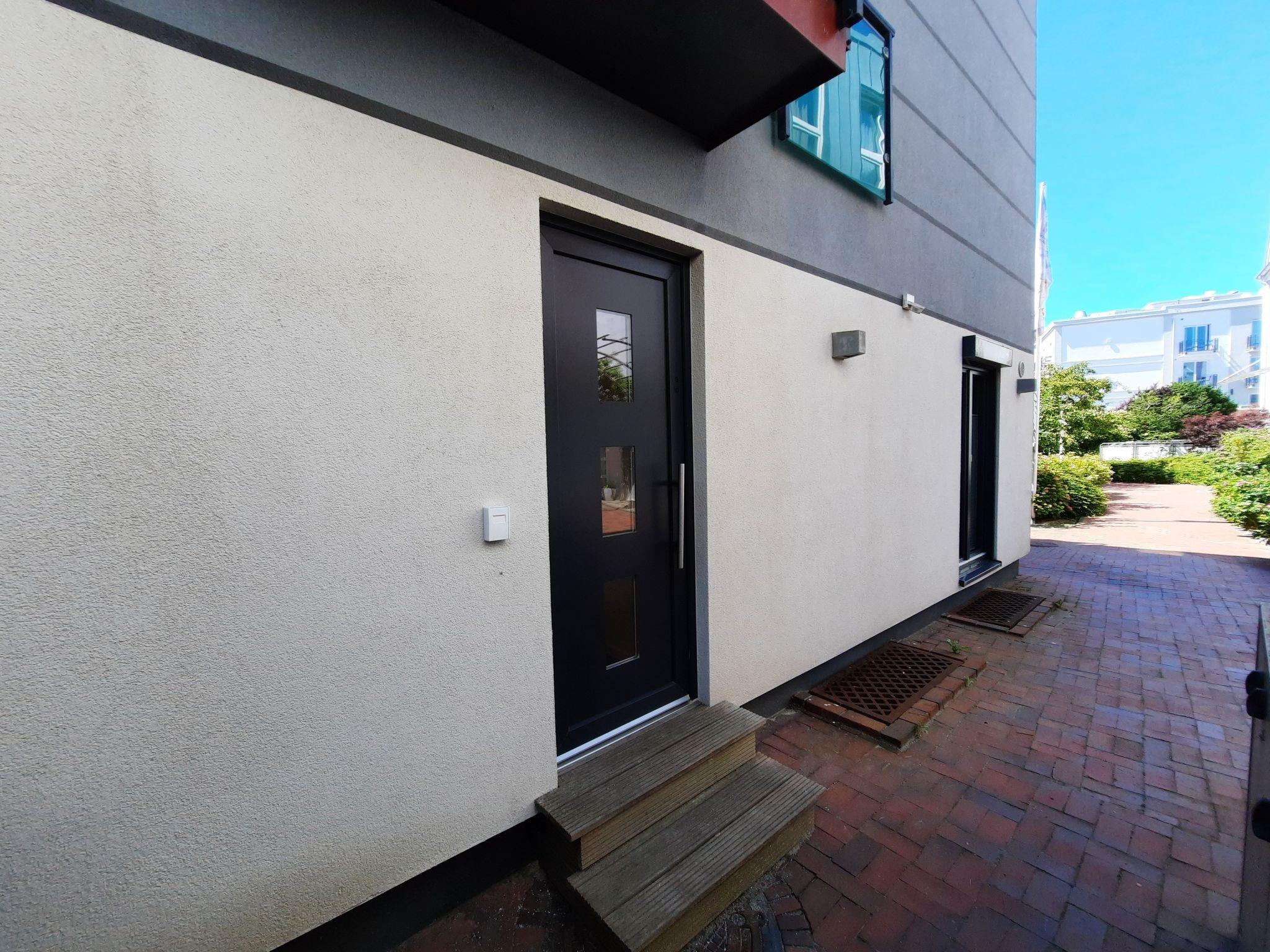 The flat is located on the side of the street facing away from Kirchstrasse ("courtyard side"). Kirchstraße itself is characterised by its quiet, yet very central location. The west beach is approx. 240 m away, the Kurplatz with the neighbouring bathhouse can be reached in approx. 350 m.