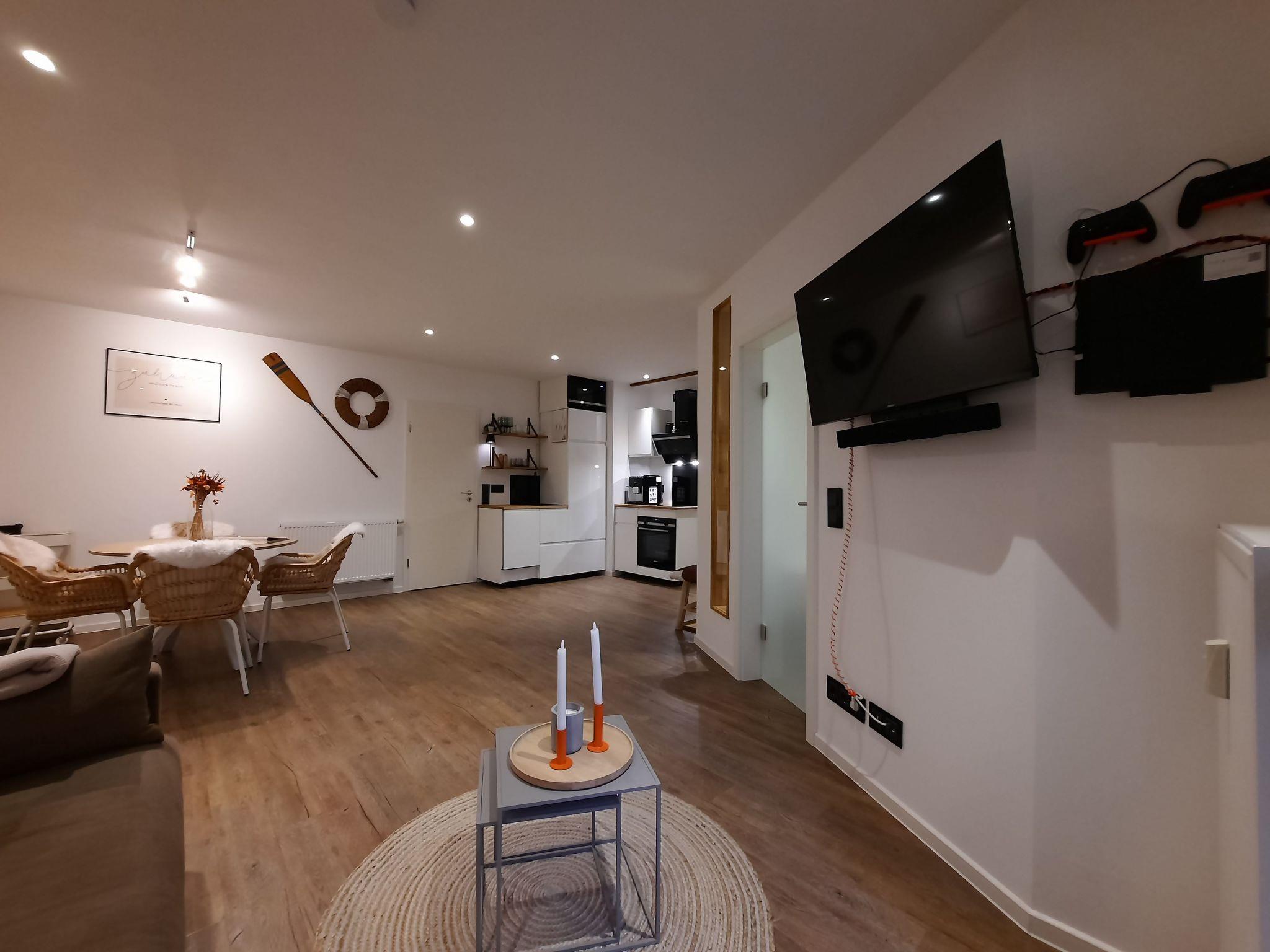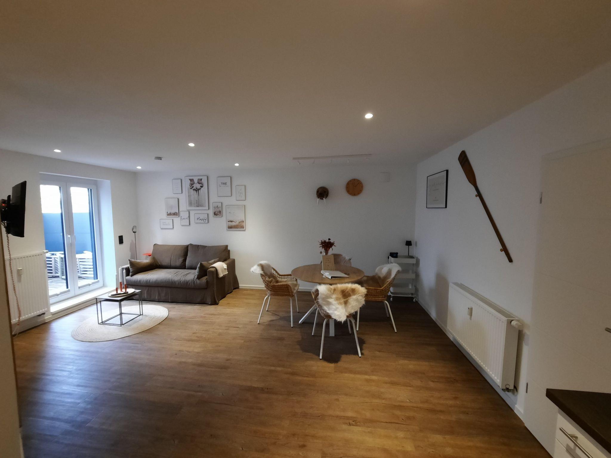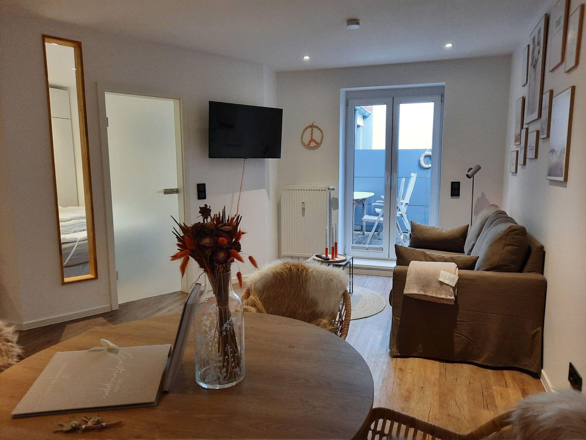 The holiday flat Lachmöwe by DeJu is a cosy 2-room flat on the ground floor with a terrace in Haus Meeresloft. The flat was extensively renovated at the beginning of 2025.
