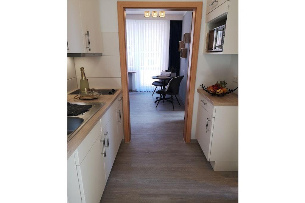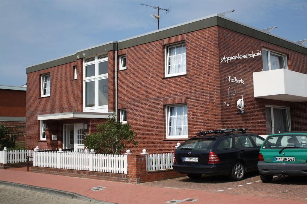 Vores lejlighed "Lachmöwe 5", klassificeret og renoveret i 2022, er en hyggelig, ikke-ryger og allergivenlig ferielejlighed på 33 kvadratmeter i den hævede stueetage. Stuen har en sofa, spiseplads, LCD-tv og radio. Herfra har du adgang til din overdækkede balkon, hvor du kan nyde eftermiddagssolen. Det lille, separate tekøkken er udstyret med alt, hvad du behøver til din ferie. Badeværelset har et vindue og en hårtørrer. Soveværelset har en seng på 1,40 x 2,00 meter, et klædeskab og badekåber. Tilbring en afslappende tid på Norderney! Nyd øens mangfoldighed – langt fra hverdagens stress – og tag dig tid til dig selv.