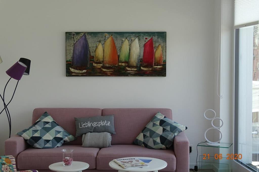På 3. etage: (entre, Køkken(Fjernsyn, spisebord, radio, elkedel, brødrister, komfur, kaffemaskine, ovn, grill, mikrobølgeovn, opvaskemaskine , køleskab, bruser, Parasol, Håndklæder inkl.), Stue/soveværelse(enkeltsovesofa, Fjernsyn), soveværelse(dobbeltseng, Fjernsyn, radio), badeværelse(bruser, Håndklæder inkl.)) balkon, terrasse, havemøbler