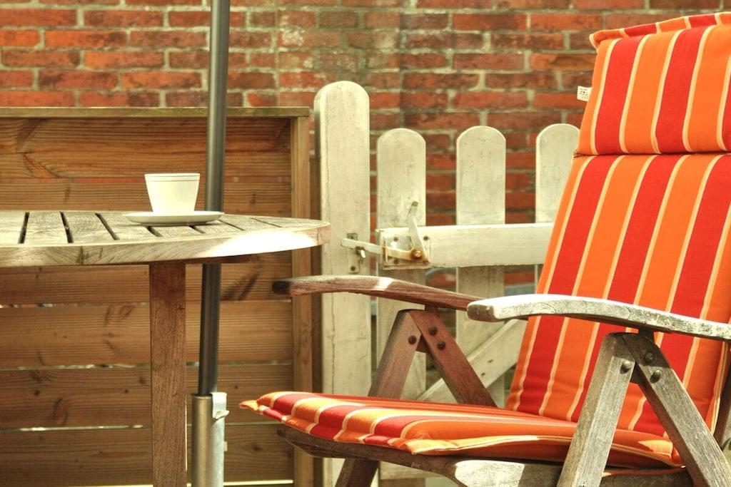 Lejligheden ligger i stueetagen og har en rummelig terrasse. Der kan du nyde din morgenmad i morgensolen. Lejligheden blev fuldstændig renoveret i 2010 og er løbende blevet opdateret og moderniseret siden da. Den har et moderne badeværelse. Slap af i en komfortabel boxmadras. I stuen giver en sovesofa af høj kvalitet med lamelbund to ekstra sovepladser i fuld størrelse. Møblerne består af basismaterialer af høj kvalitet med charmerende og individuelle detaljer. Lejligheden har et soveværelse, et fuldt udstyret køkken med spiseplads til fire personer og en stue med en sovesofa. Der er også tv og radio samt gratis Wi-Fi. En rejseseng og en højstol er tilgængelige til små børn efter anmodning. Den er egnet til to til fire personer.