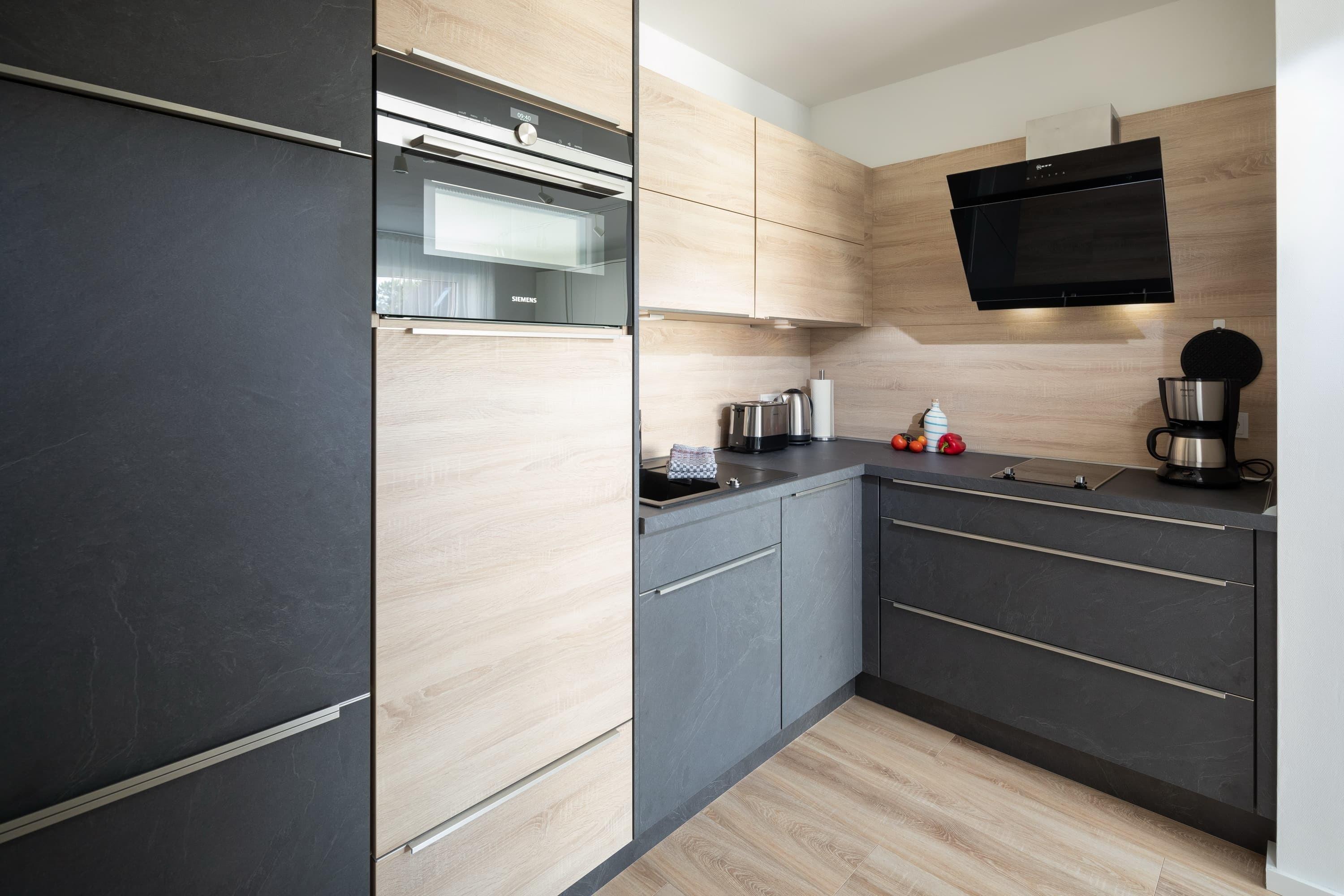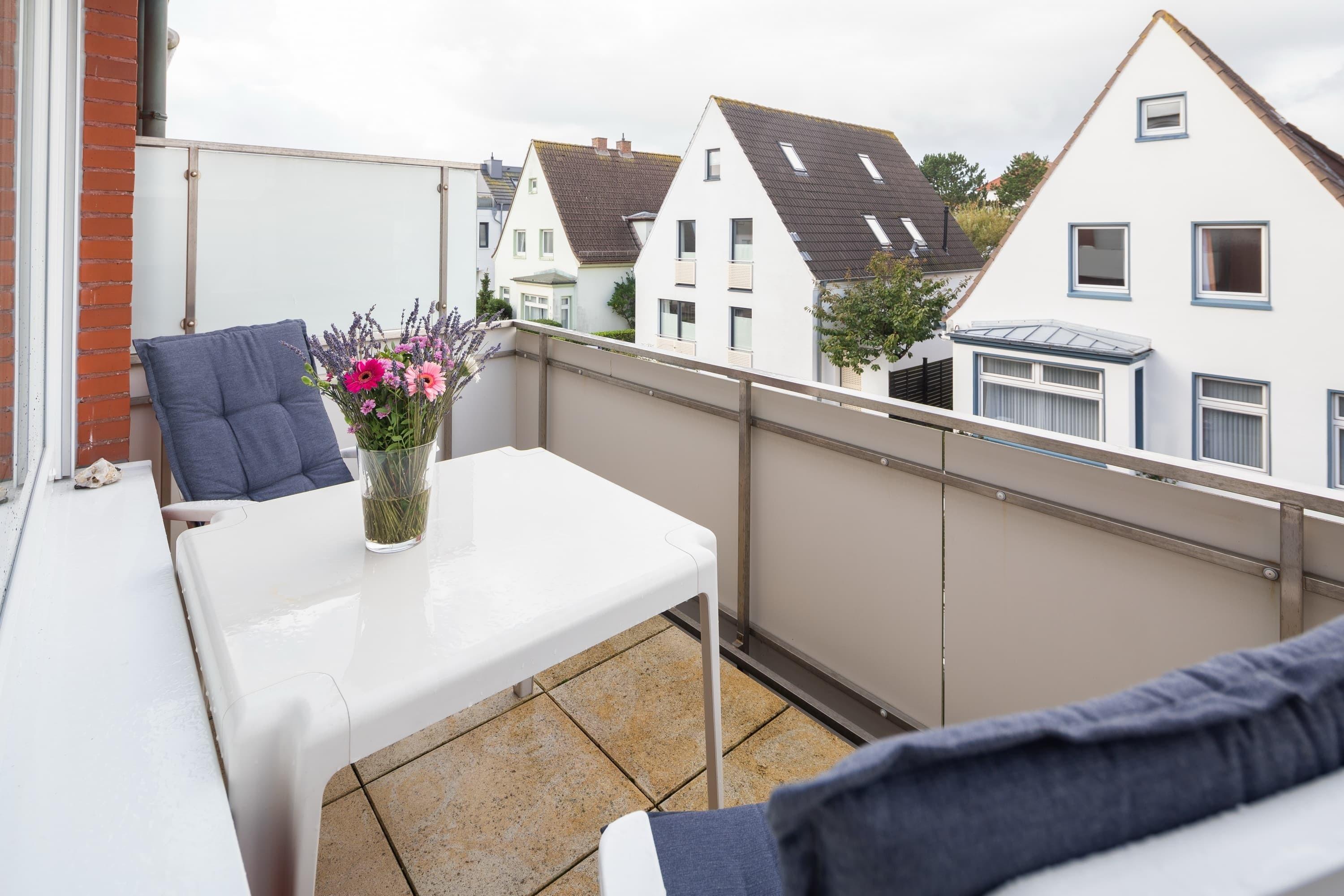 Die Ferienwohnung wurde 2019 komplett saniert. Der helle Wohn- und Schlafraum bietet ein hochwertiges Schrankbett mit integriertem Sofa. Am Esstisch können Sie gemeinsam frühstücken oder im gemütlichen Sessel etwas lesen. Die schöne Fototapete sorgt auch bei Nieselregen für Urlaubsgefühl! Die Küche bietet alle gängigen Elektrogeräte und wird auch Kochliebhabern gerecht. Vom Wohn- und Schlafraum aus gelangen Sie auf den geräumigen Balkon, von dem aus Sie die Dünen des Nordstrandes sehen können. Nur 50m sind es bis zum beliebten „Januskopf“ mit Surfcafé und Cornelius.