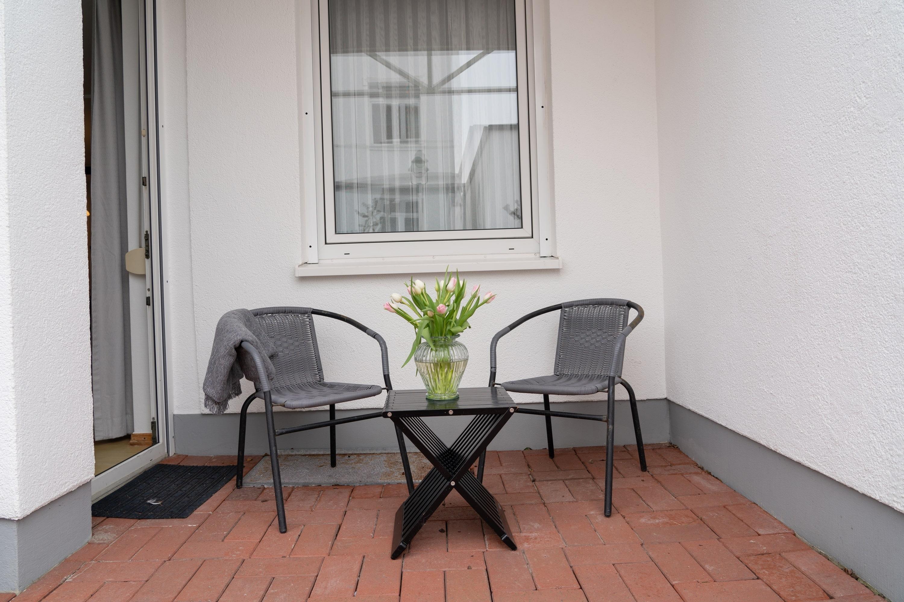 Die Terrasse zur Winterstraße eignet sich für einen Morgenkaffee oder ein Glas Wein am Abend.