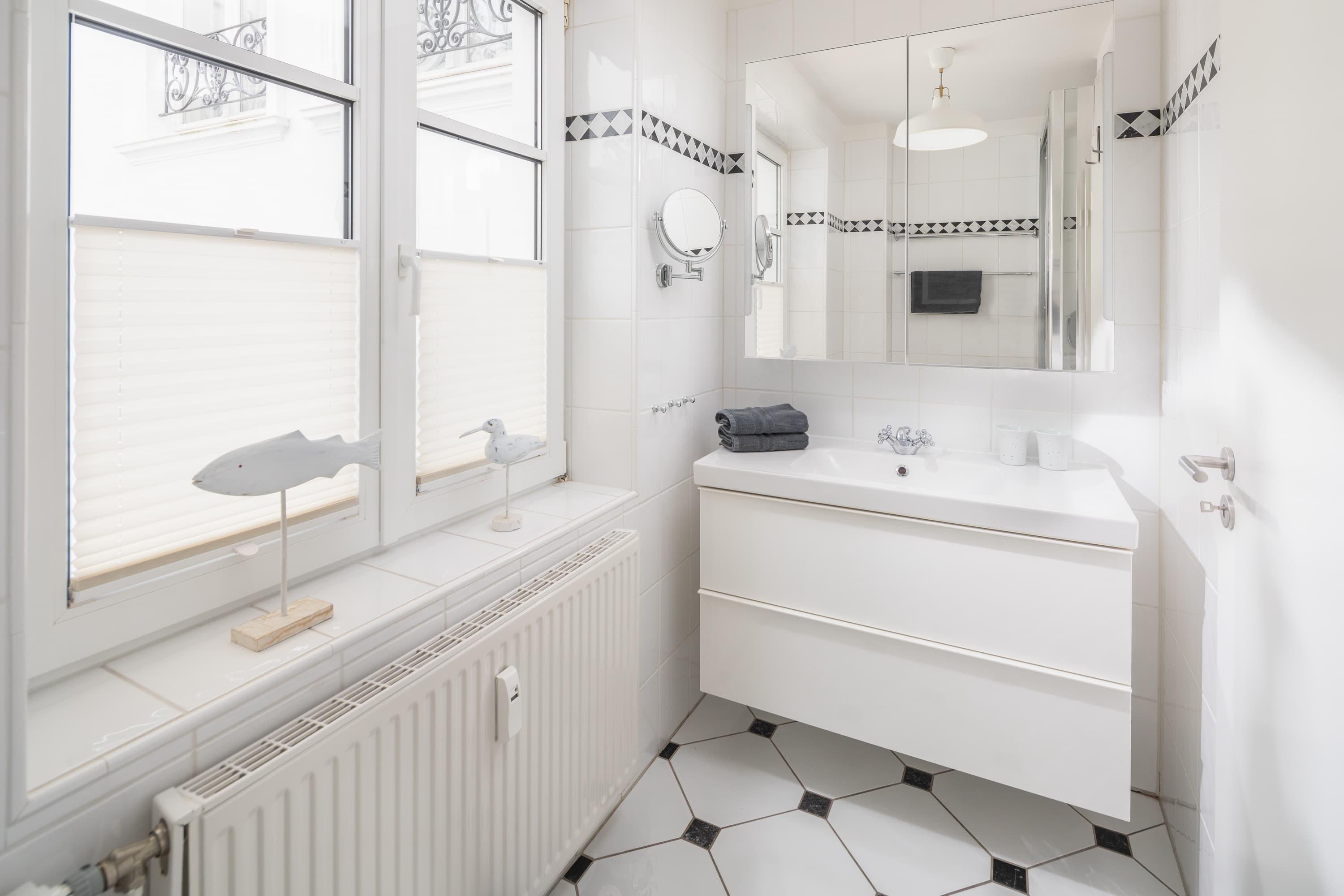 Das Jugendstil-Haus „Haus Nordsee“ wurde 1990 nach alten Bildern aufwendig, liebevoll und detailgetreu kernsaniert. Durch die antike Doppelflügeltür öffnet sich der Blick auf das Treppenhaus mit Marmorboden und Marmortreppe und einem Treppengeländer mit kunstvollem Schmiedegitter. Die 50qm große Wohnung bietet einen gemütlichen Wohn- und Essbereich mit großem Erkerfenster und zwei Schlafzimmern (1x 1,60 | 1x 1,80) sowie ein hochwertiges Bad – passend zum Jugendstil-Ambiente. Die Wohnung ist modern und elegant eingerichtet und bietet 4 Personen ausreichend Platz und eine gemütliche Umgebung. Im Keller befindet sich eine Waschmaschine und ein Trockner, die über Münzautomaten betrieben werden.
