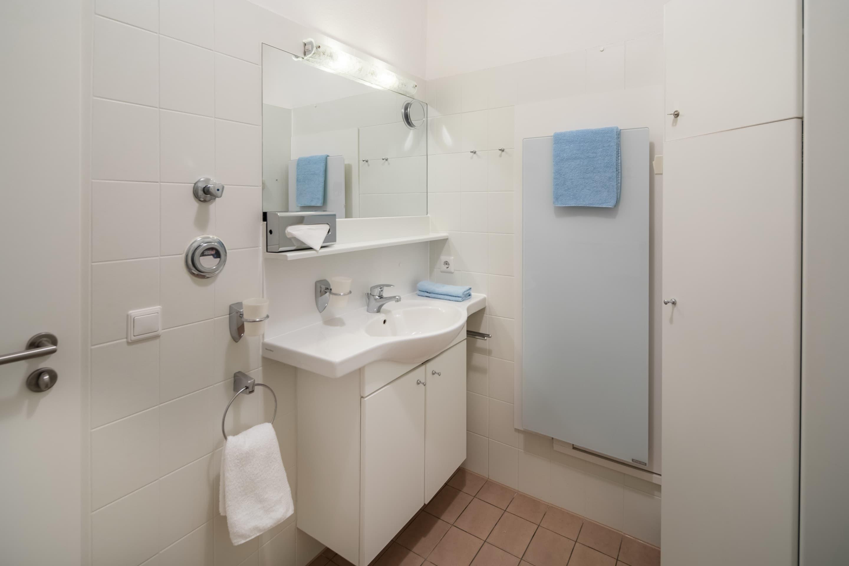 Das Schlafzimmer ist mit einem Doppelbett und einem Etagenbett (nur für die Nutzung von Kindern) ausgestattet. Beides befindet sich in einem Raum und ist durch einen Vorhang abgegrenzt. Für beide Bereiche sichtbar, ist auch dort ebenfalls ein Flachbildfernseher installiert. Die Wohnung ist beschränkt für die Nutzung von 3 Erwachsenen oder alternativ 2 Erwachsenen und 2 Kindern. Hunde sind herzlich Willkommen.