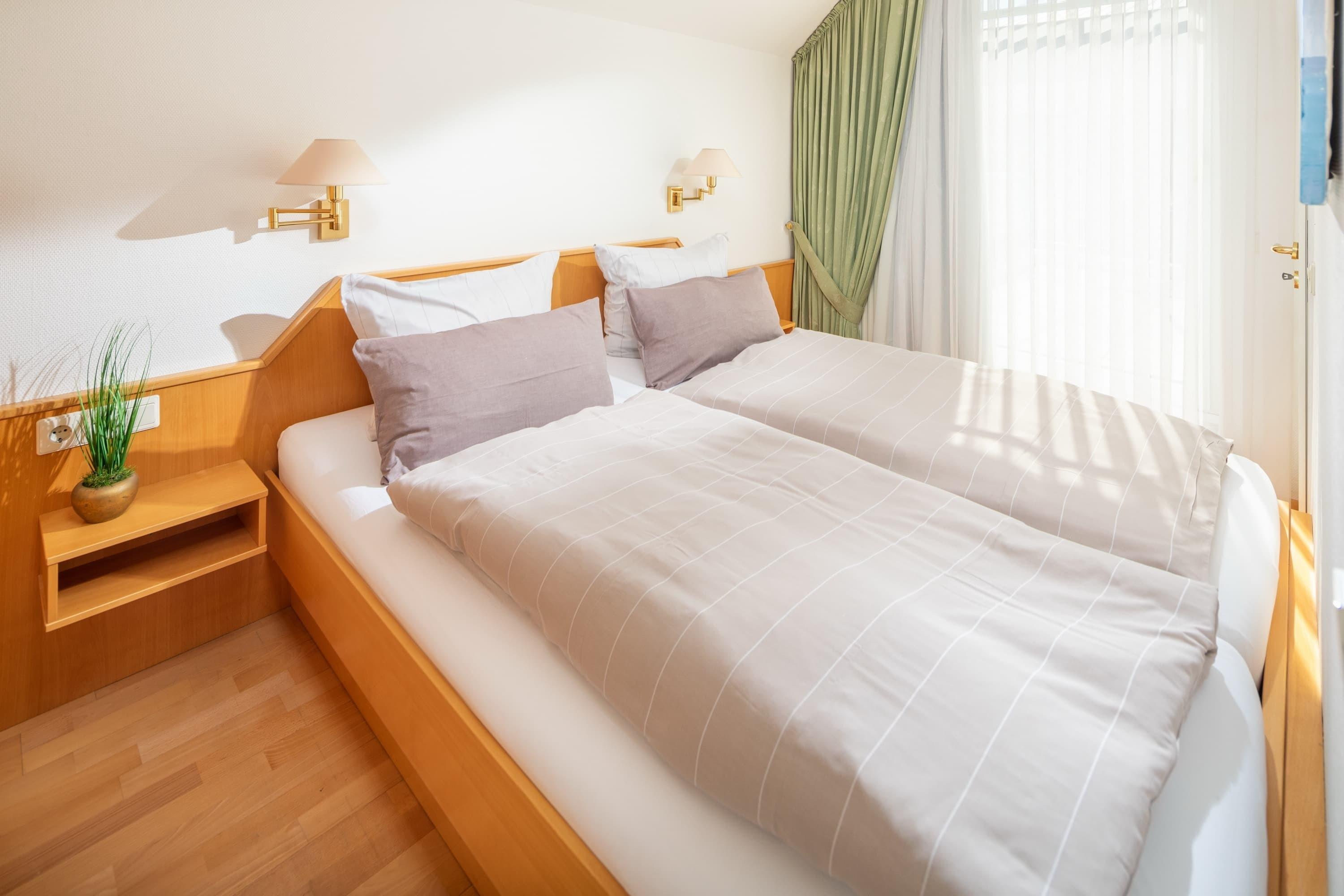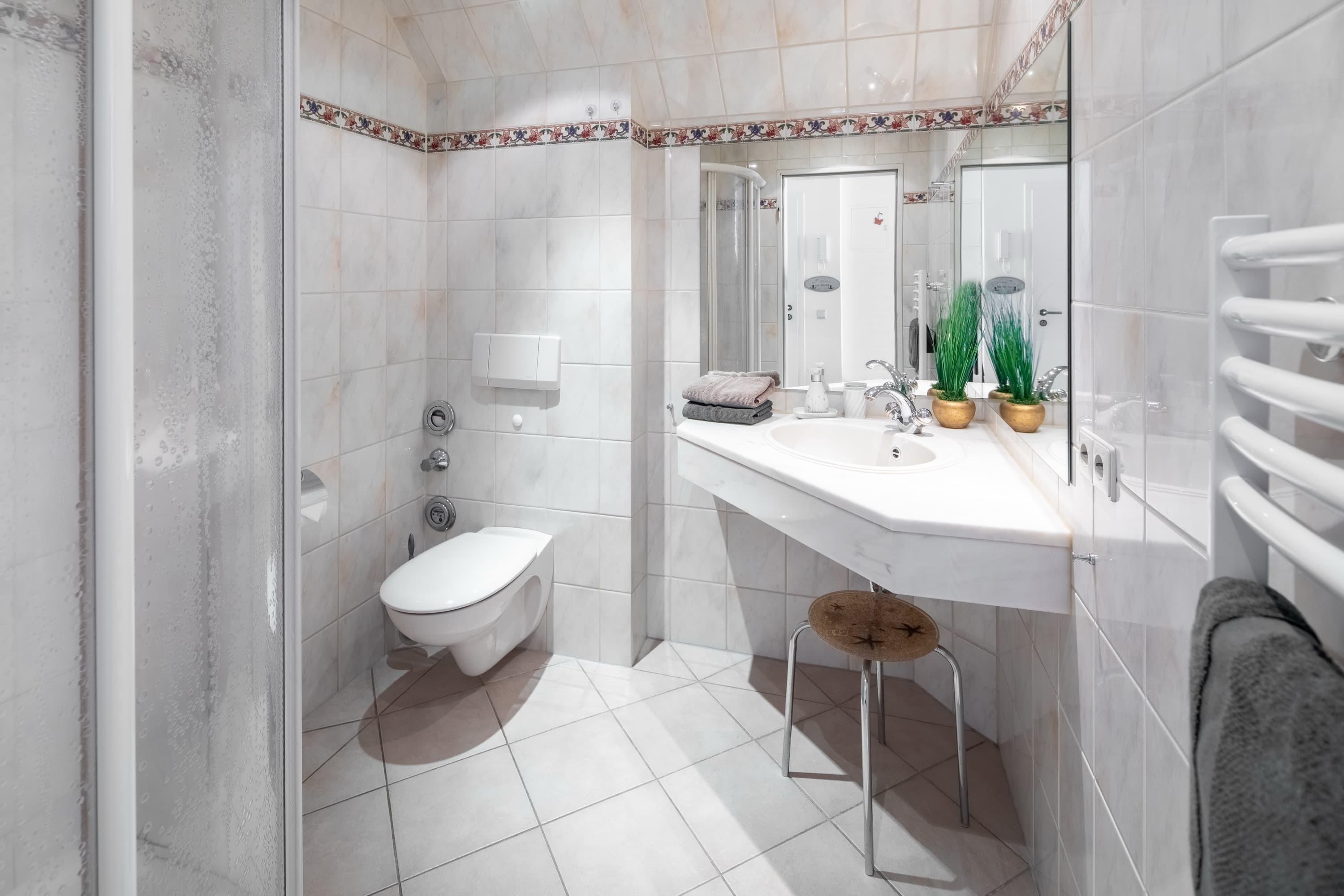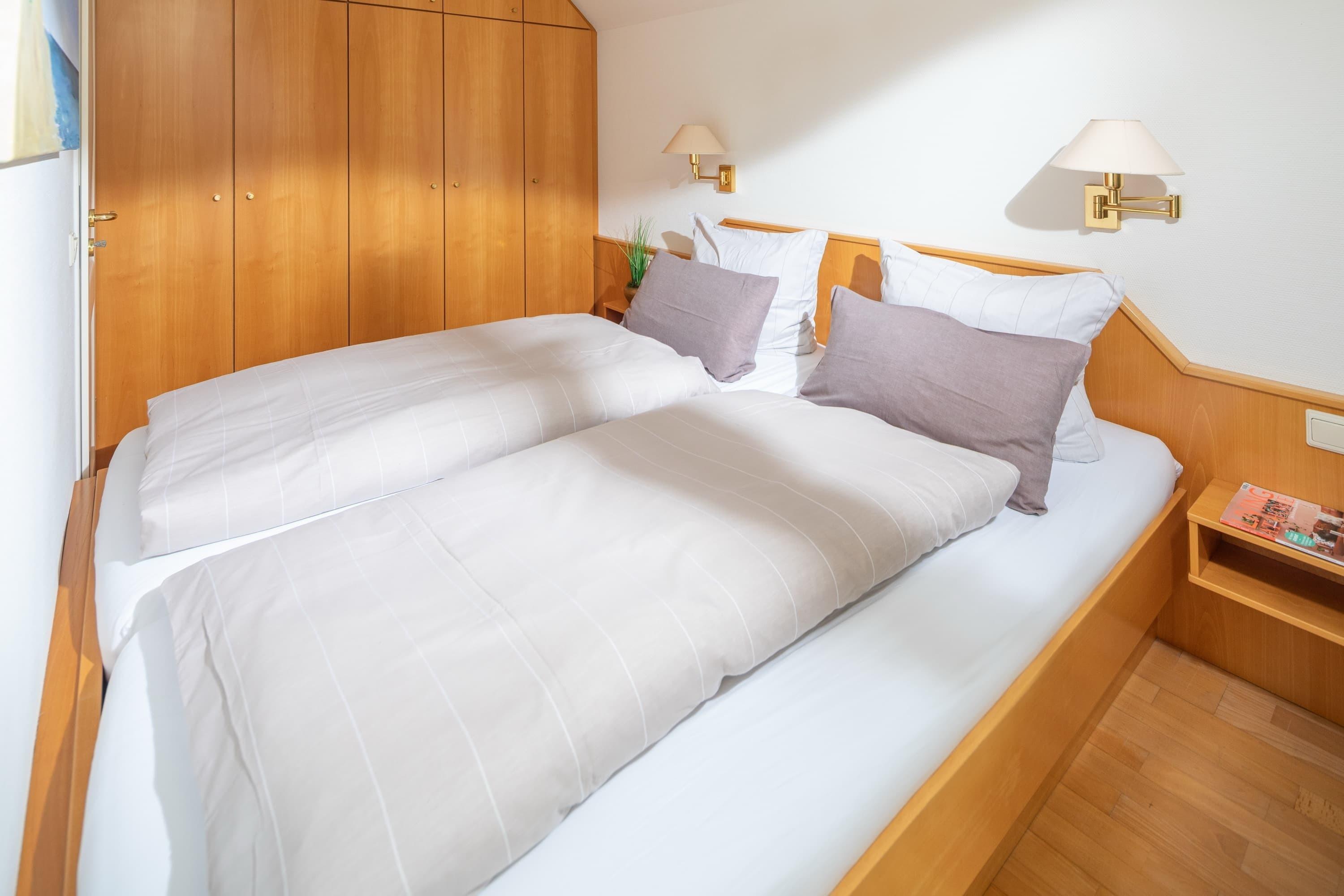 Die helle und freundliche Ferienwohnung verfügt über ein sehr geräumiges Wohnzimmer mit Esstisch und Couchgarnitur. Von dort aus betreten Sie auch den 11qm großen Südwestbalkon. Das Schlafzimmer verfügt über ein Doppelbett (180cm Breite) und hat ebenfalls Balkonzugang. Im Wohnzimmer befindet sich mit der Ausziehcouch eine alternative Schlafgelegenheit. Die Küche ist mit allen gängigen Geräten ausgestattet. Das weiß geflieste Duschbad ist hell und freundlich und geräumig.