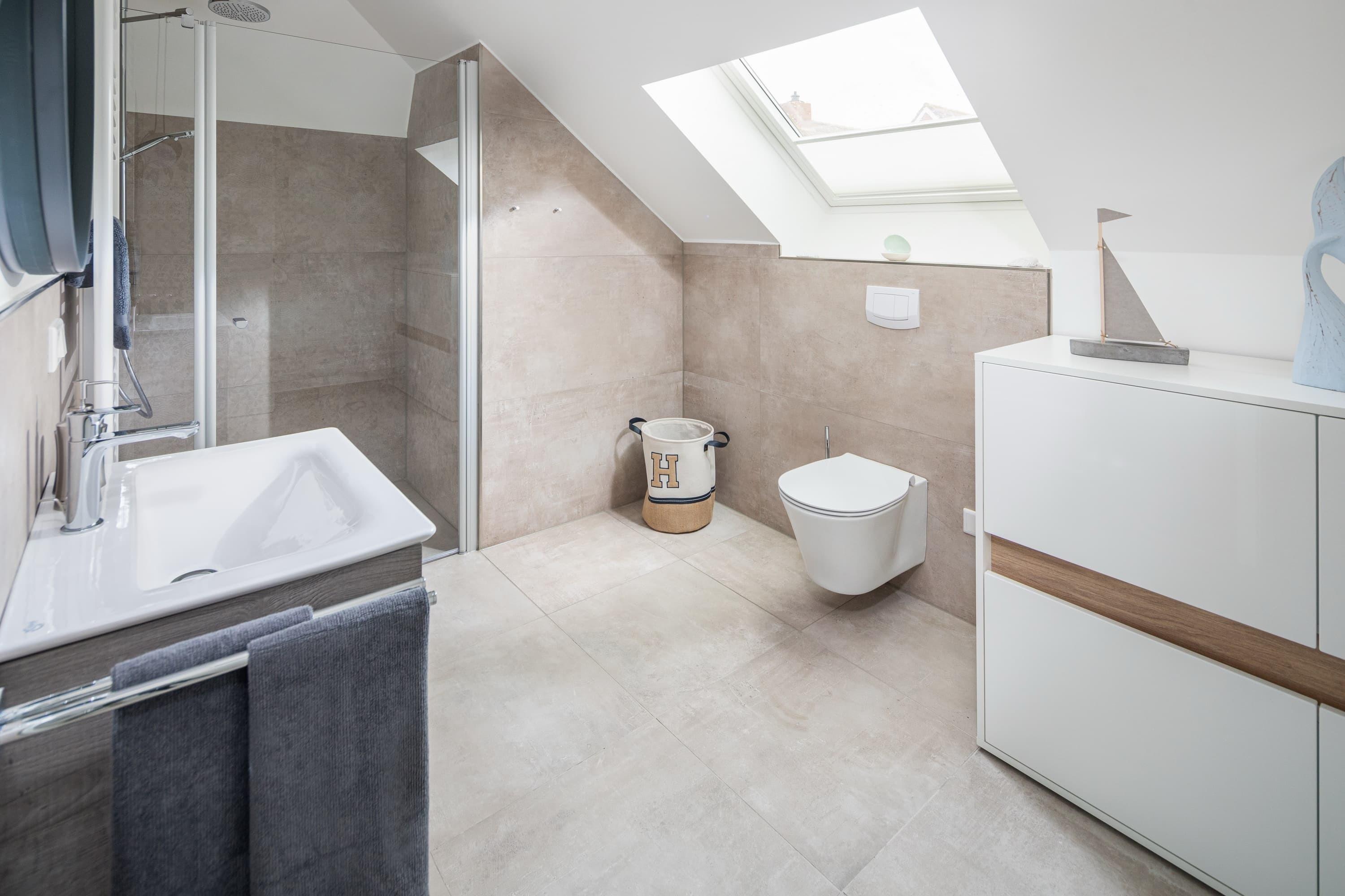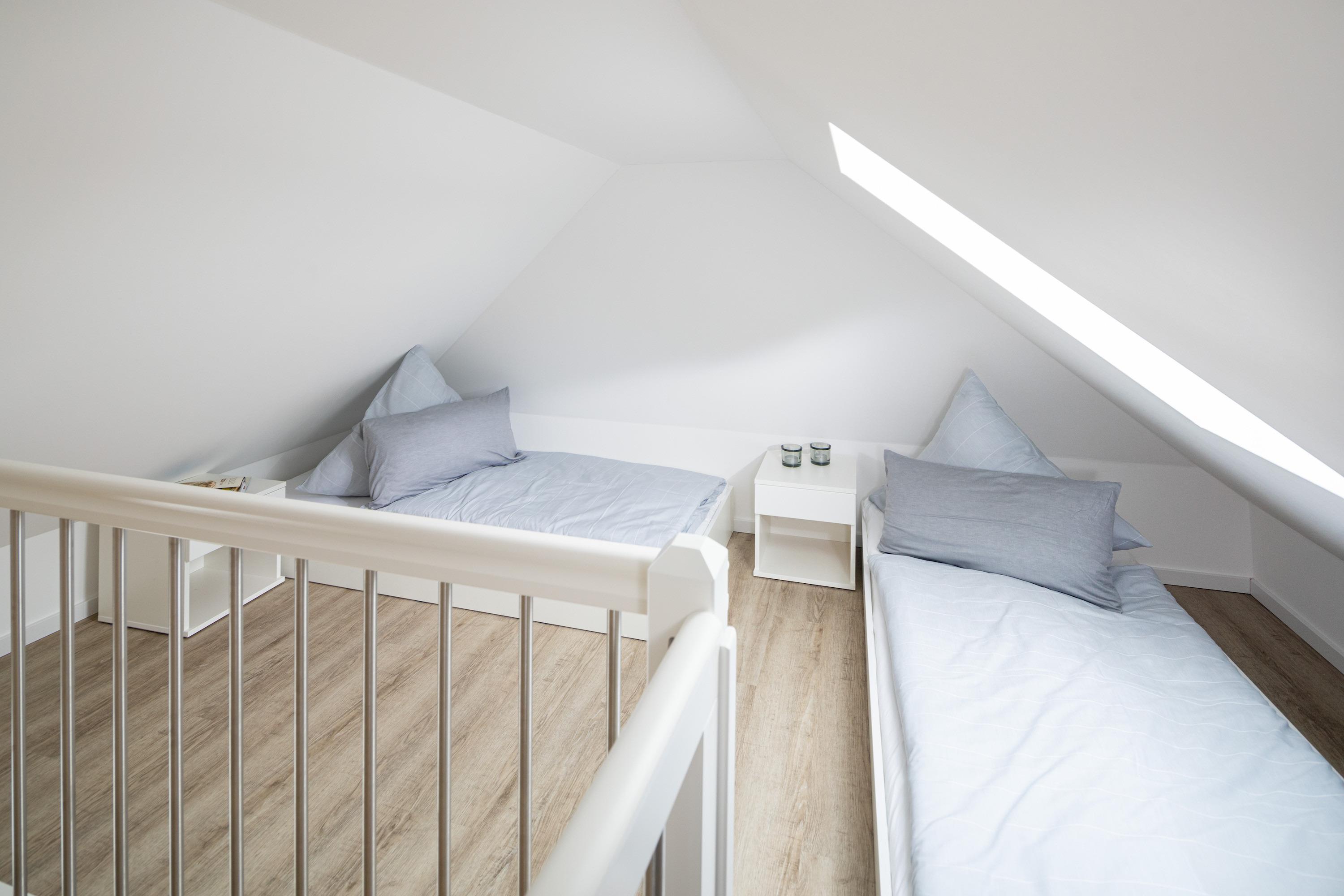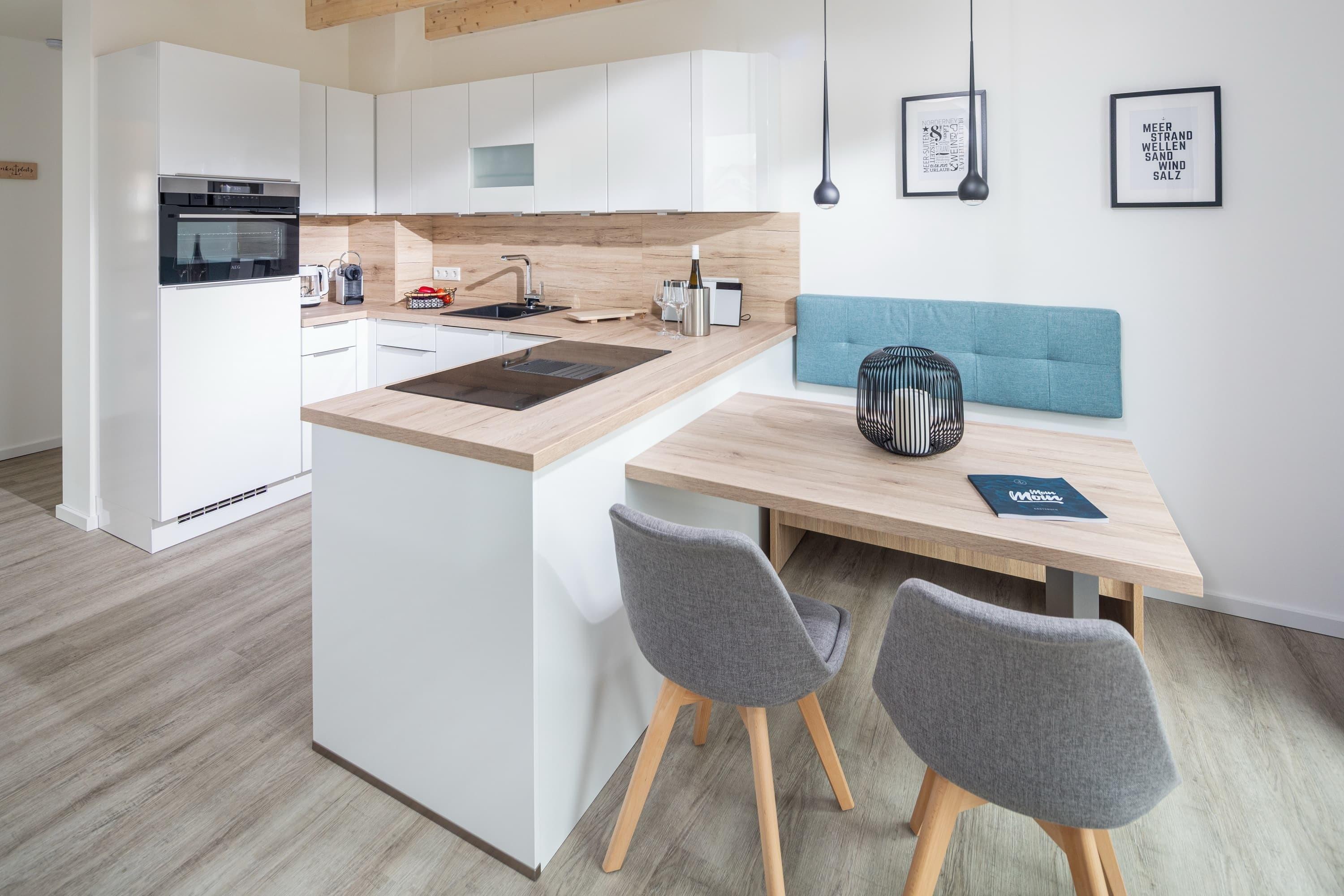 Im Haus gibt es insgesamt 7 Wohneinheiten. Die Meersuite N°7 liegt im 02. OG (Fahrstuhl) und verfügt über ein Schlafzimmer mit Boxspringbett, ein Badezimmer (ebenerdige Dusche) und einen gemütlichen Wohnraum mit Eckcouch, Esstisch, offener Küche und Zugang zum Balkon. Im Wohnraum steht Ihnen der Schlafgiebel mit zwei Einzelbetten als alternative bzw. zweite Schlafgelegenheit zur Verfügung. Hunde sind in dieser Wohnung herzlich willkommen.