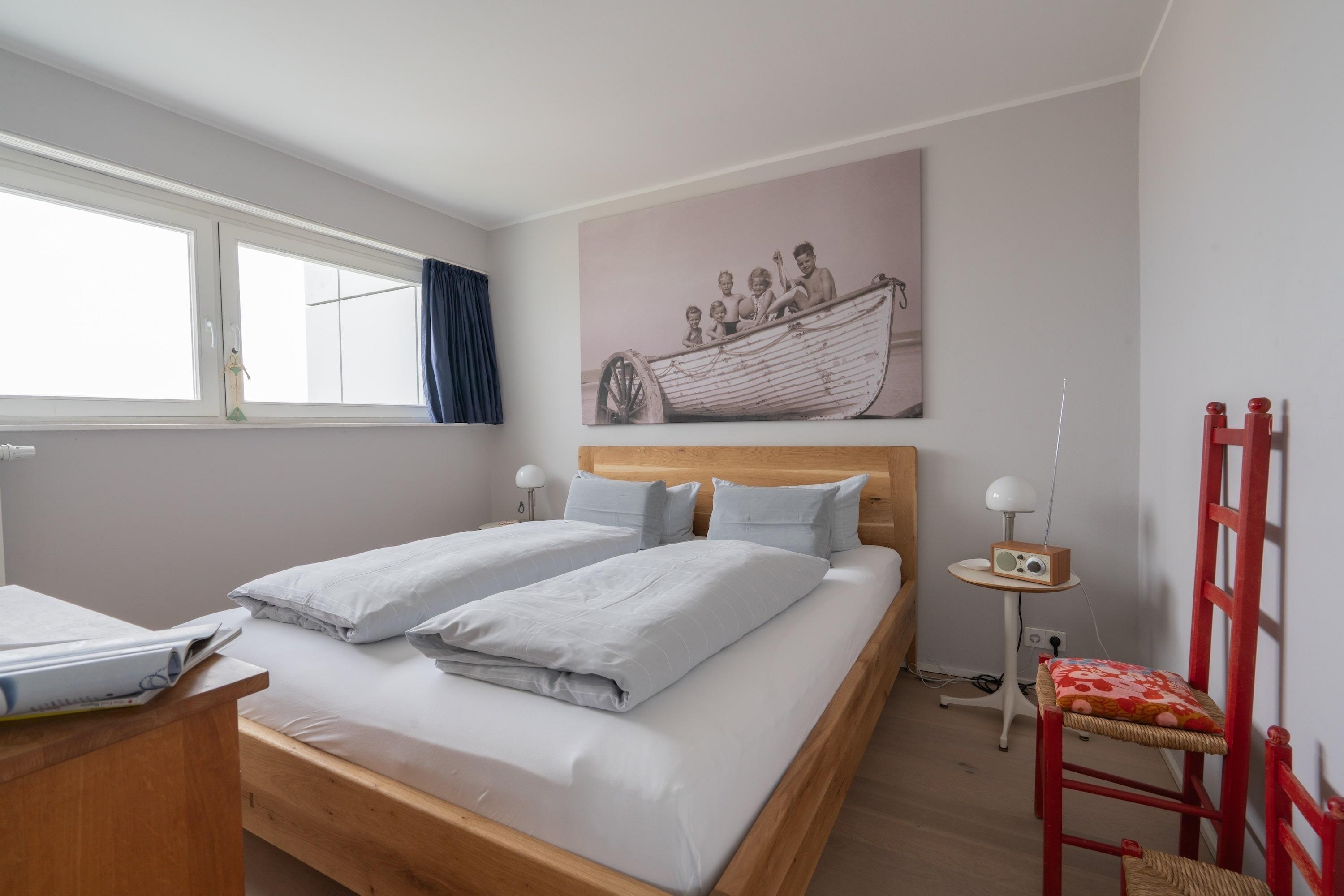 - Helles Schlafzimmer mit Doppelbett [&] Meerblick für erholsame Nächte.