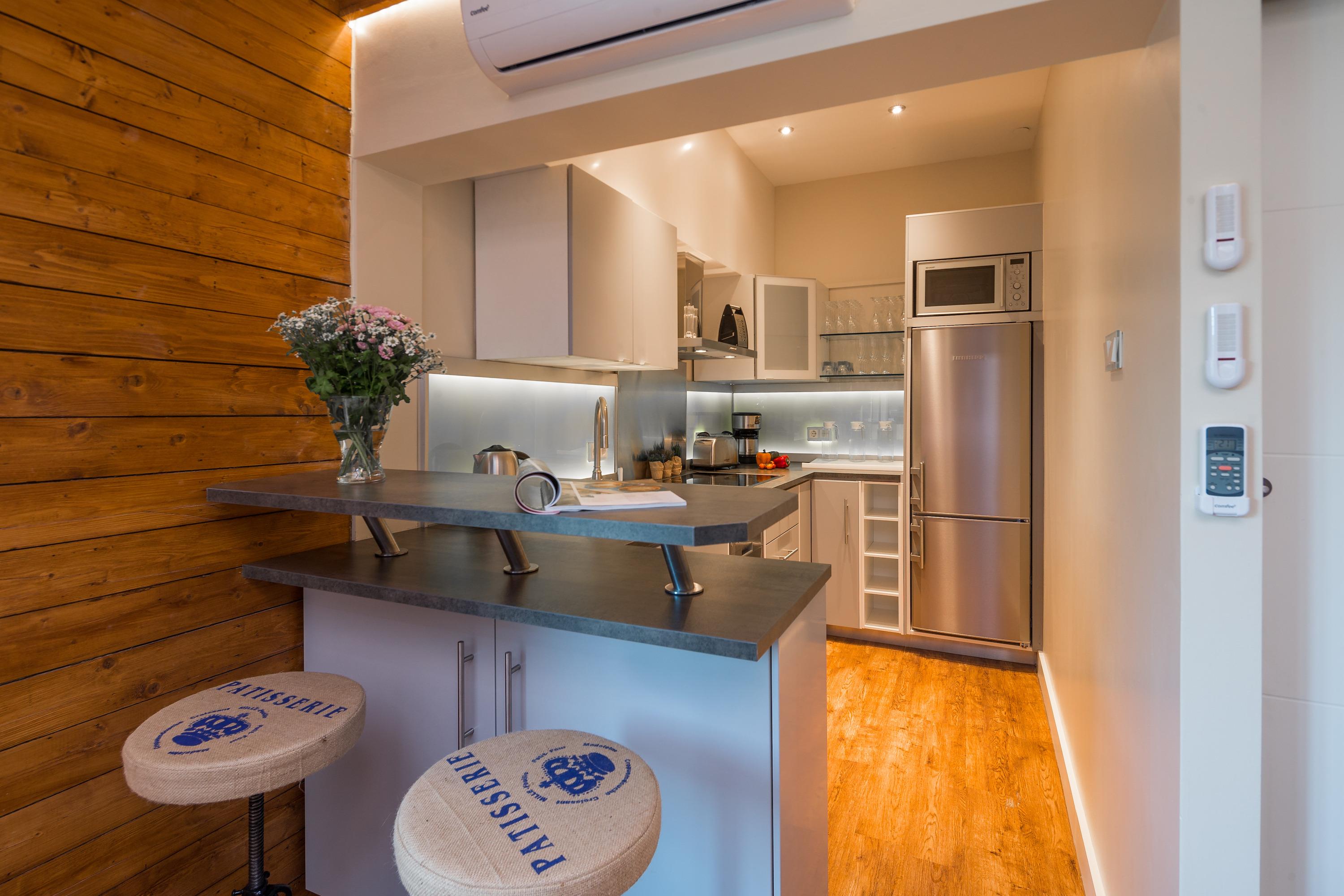 Das moderne Badezimmer überzeugt mit Dusche, Badewanne und einem großzügigen Schminkbereich. Besonders praktisch: ein begehbarer Kleiderschrank, in dem Sie Ihre Urlaubsgarderobe bestens unterbringen können.