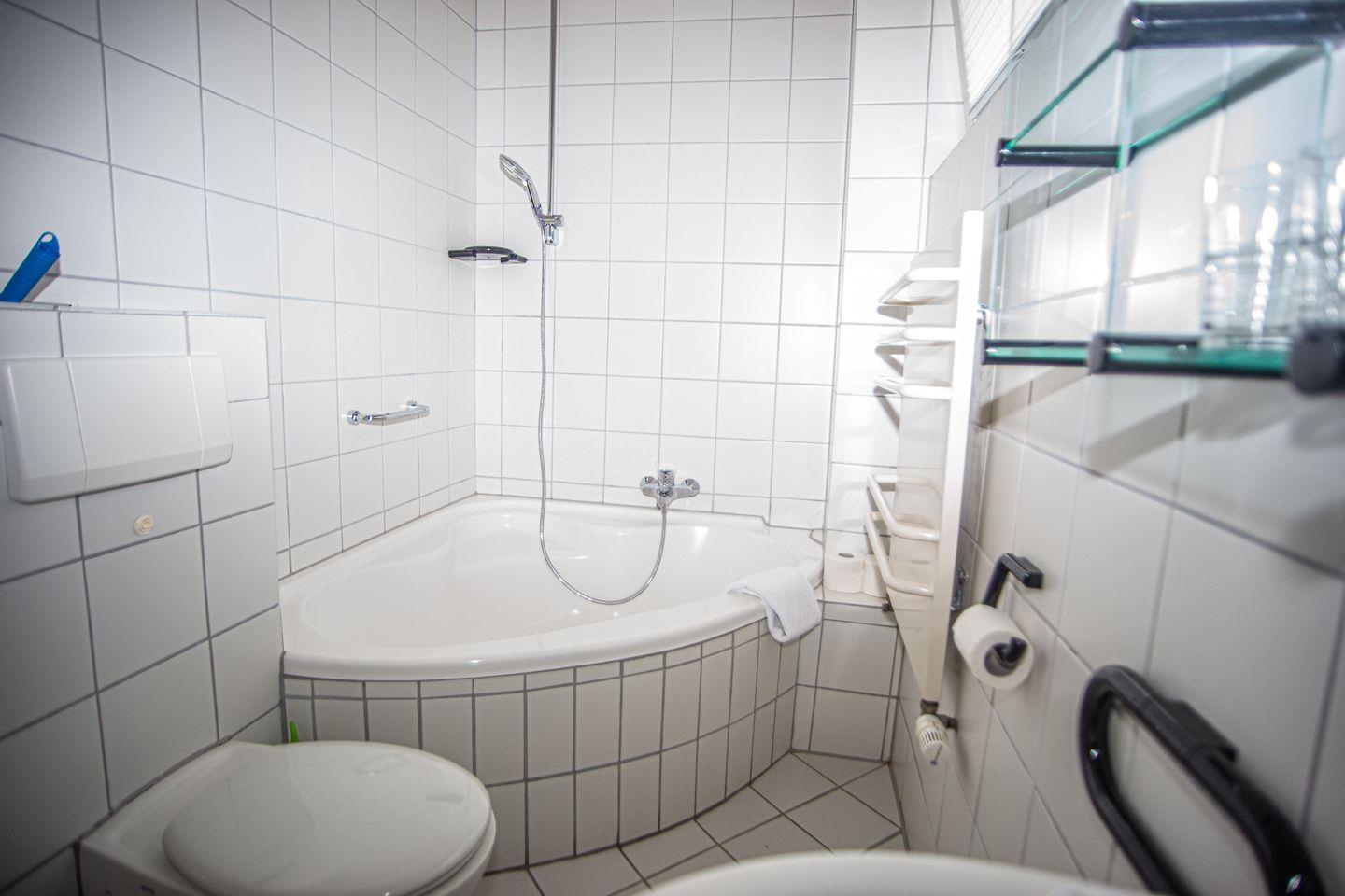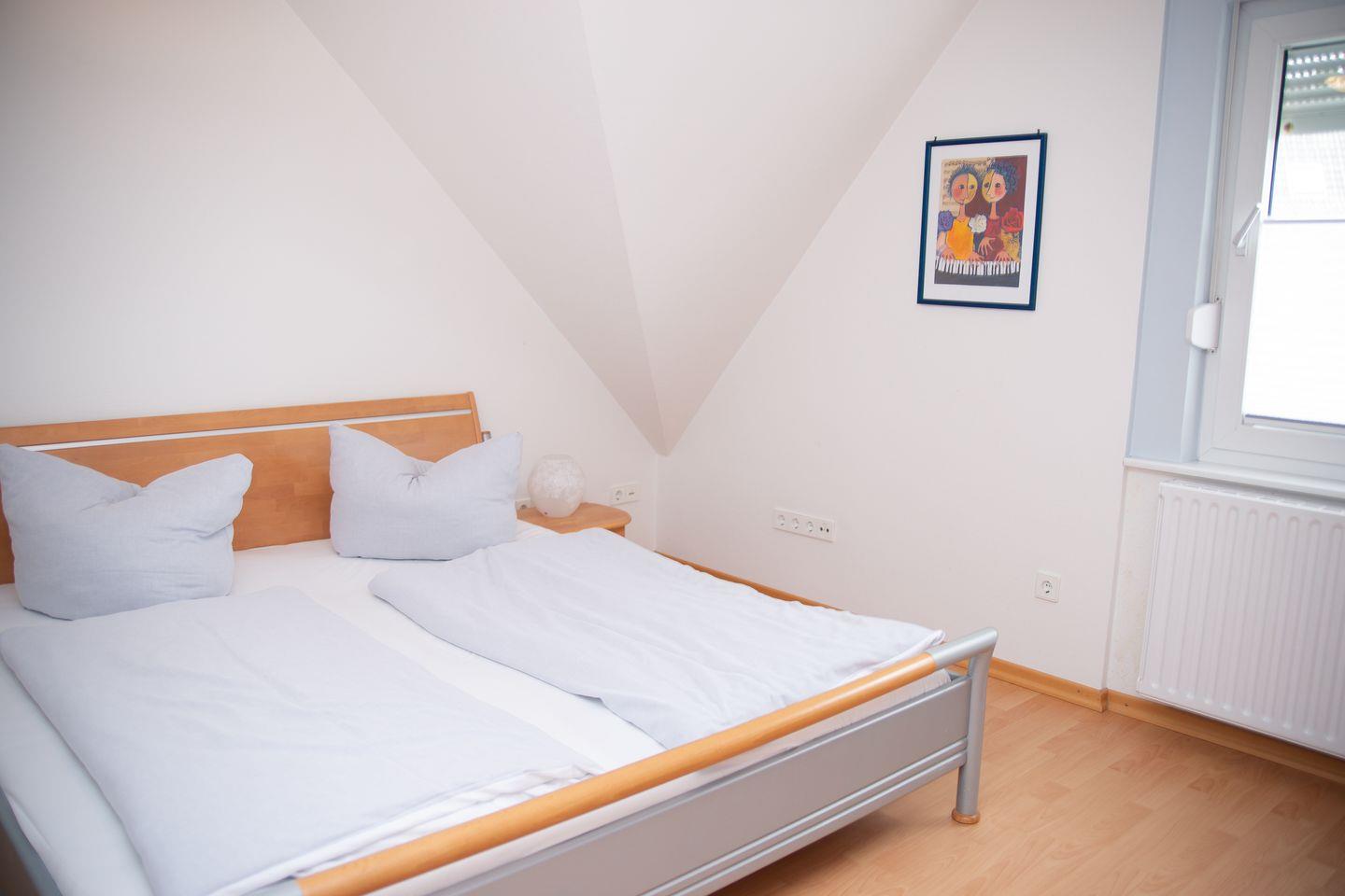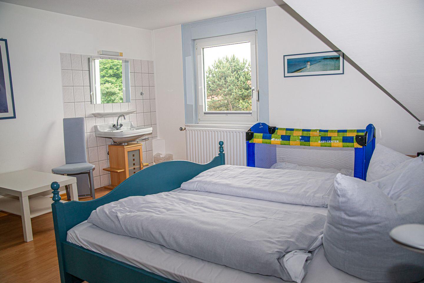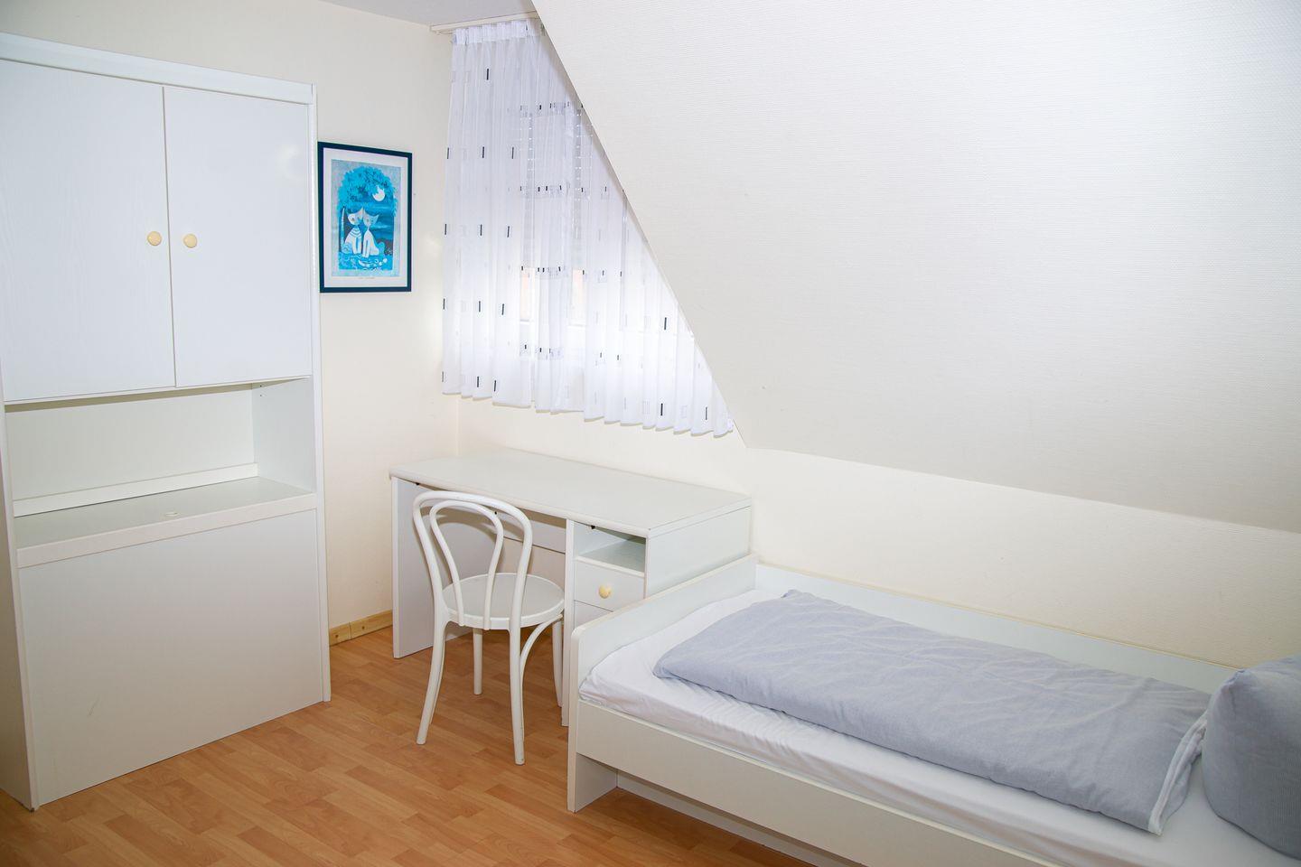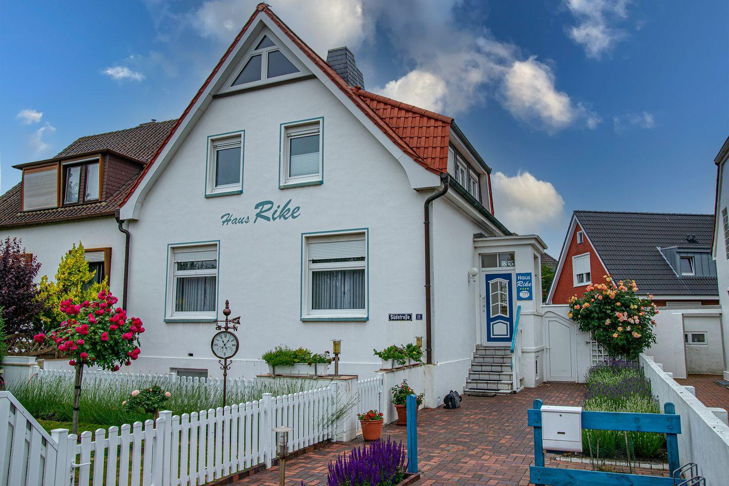Haus Rike verfügt im Hochparterre über ein separates Schlafzimmer mit Doppelbett, ein Wohnzimmer, eine separate Küche mit Essplatz für 7 Personen und ein Tageslichtbad mit Badewanne/WC. In der 1. Etage befinden sich drei weitere Schlafzimmer. Zwei davon sind mit je einem Doppelbett ausgestattet. Das größere hat eine zusätzliche Sitzmöglichkeit und ein Waschbecken. Das dritte Schlafzimmer im 1. OG ist ein Einzelzimmer mit Einzelbett, Schreibtisch und einem Waschbecken. Tageslichtbad mit Badewanne/WC.