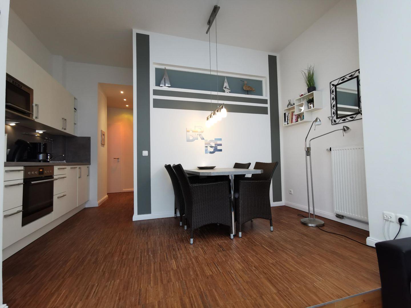 das Appartement verfügt über ein geräumiges Schlafzimmer mit Doppelbett (zusätzlichem TV) und ein weiteres Schlafzimmer mit 2 Einzelbetten. Vom Wohnraum unter dem schrägen Glasdach haben Sie Zugang zum Südost-Balkon mit Blick entlang der Luciusstraße. Der Essbereich befindet sich vor der voll ausgestatteten Küchenzeile. Badezimmer mit Dusche/WC. Fahrstuhl vorhanden.