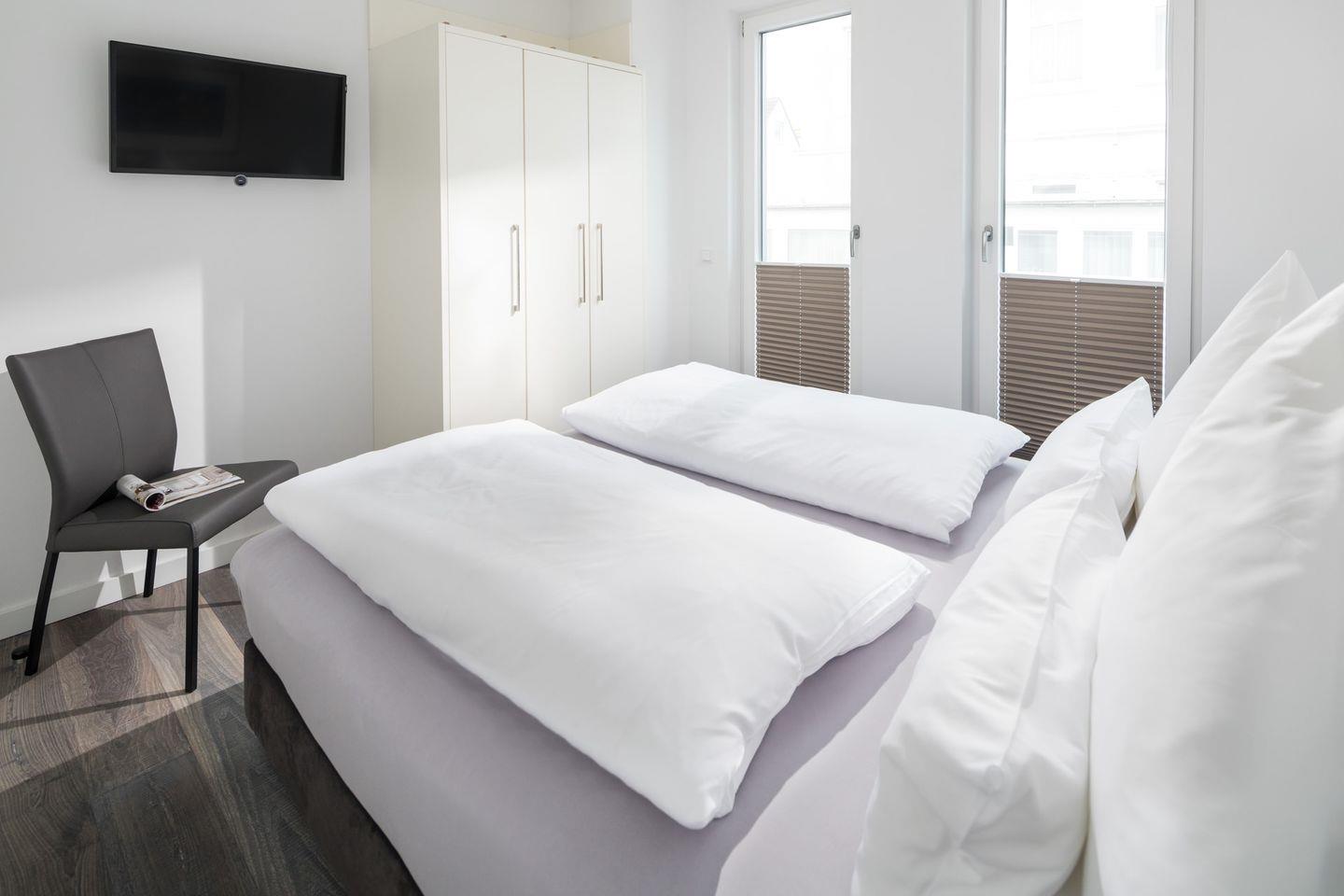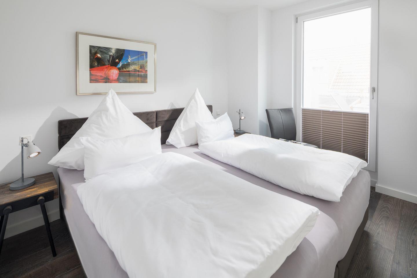 Komfortable Ferienwohnung mit großer Dachterrasse, 3 Räume, 2 separate SZ, hochwertige Ausstattung, Fußbodenheizung, Boxspringsbetten, BJ 2018