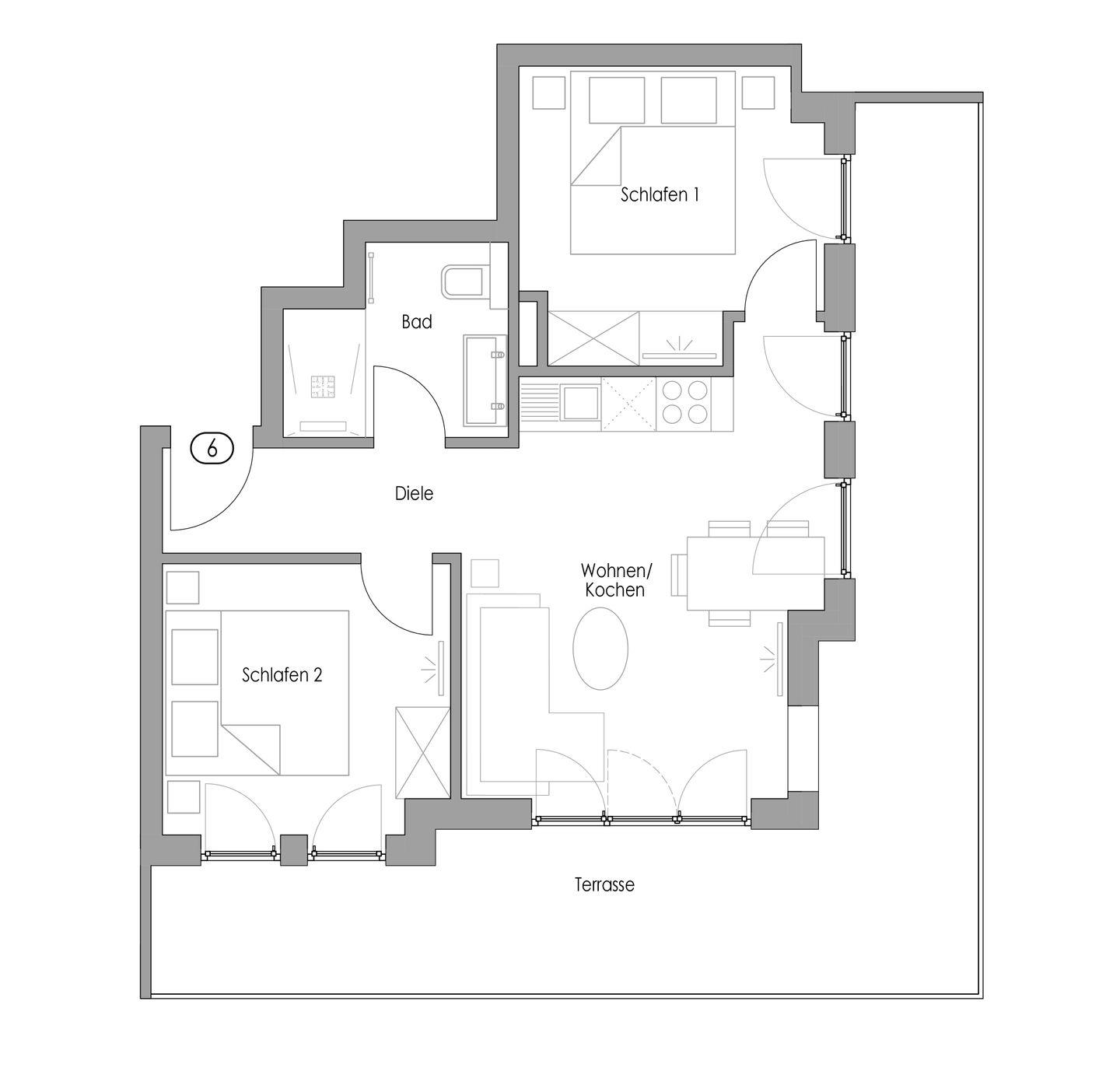 Die großzügige 3-Raum-Ferienwohnung ist 2018 neu erbaut worden, daher mit neusten Energiestandards und modernster Technik ausgestattet. Die Räume sind hell und modern mit sehr hochwertigen Möbeln eingerichtet. In den beiden Schlafzimmern finden Sie gemütliche Boxspringbetten (1,80m Breite) vor, im Wohn-/Essbereich ist eine hochwertige Einbauküche errichtet worden.