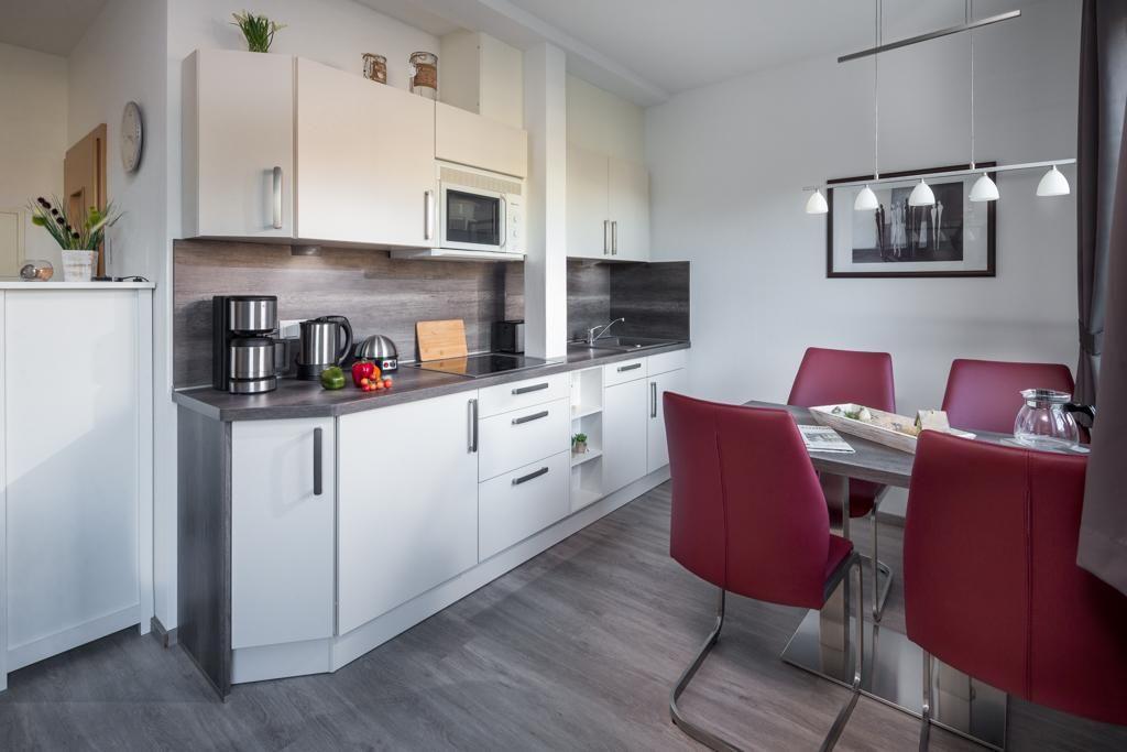 Die Wohnung selbst bietet mit ihren zwei geräumigen Zimmern einiges an Platz. Der Wohnbereich integriert eine moderne Küchenzeile, die im Jahr 2016 installiert wurde. Das Schlafzimmer ist mit einem Doppelbett ausgestattet und bietet Platz für ein Kinderbett (ist buchbar), wenn dies gewünscht wird. Das Badezimmer ist mit einer Dusche und einem WC ausgestattet und es steht auch ein weiteres separates WC zur Verfügung, was besonders praktisch ist.