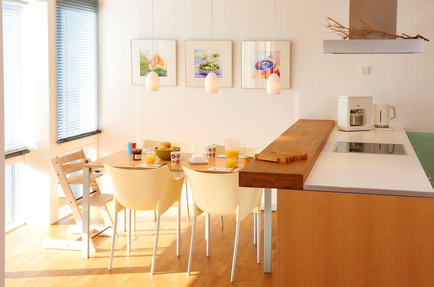 Die Wohnung bietet einen Wohnraum, der nahtlos in die moderne Küche übergeht. Ein Schlafzimmer ist mit einem Doppelbett ausgestattet. Ein weiteres Schlafzimmer ist als Schlafraum für Kinder eingerichtet. Der Schlafraum wurde mit einem Tandembett ausgestattet. Das Badezimmer ist mit einer Badewanne und einer Dusche ausgestattet. Die Ferienwohnung verfügt über einen Südbalkon. Zudem sind Waschmaschine und Trockner in der Wohnung vorhanden, was besonders für längere Aufenthalte von Vorteil ist (Keller runter, zweite Tür rechts, der Wohnungsschlüssel passt). Hunde sind in dieser Unterkunft nicht erlaubt.