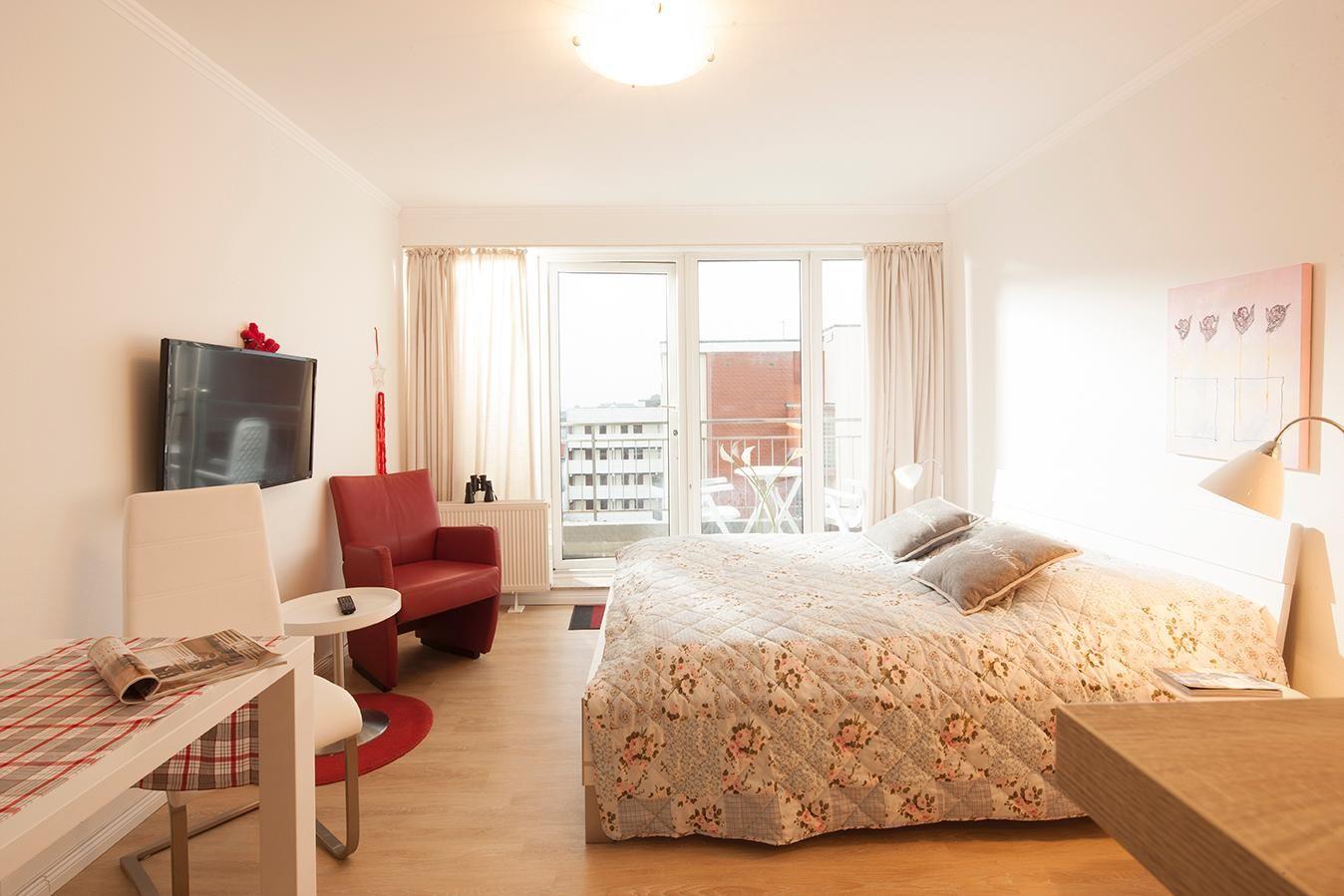 Die Ferienwohnung "Kaiserhof 56" ist ein 1-Raum-Apartment, das sich im fünften Stock des Apartmenthauses "Kaiserhof" befindet. Das Haus liegt direkt am Meer, nur wenige Schritte vom Strand entfernt. Der Inselkern mit einigen Restaurants, Cafés oder weiteren Einkaufsmöglichkeiten befindet sich nur wenige Gehminuten entfernt. Die Wohnung bietet Platz für bis zu 2 Personen (ideal für Paare). Das Haus verfügt über einen Fahrstuhl.