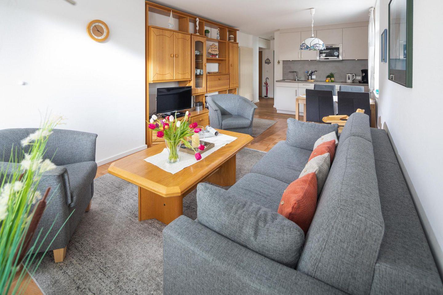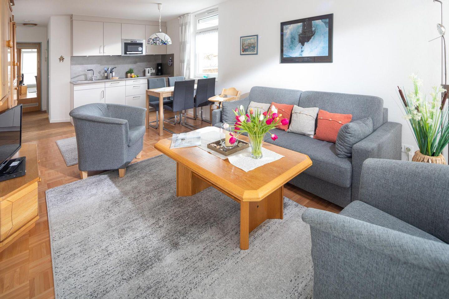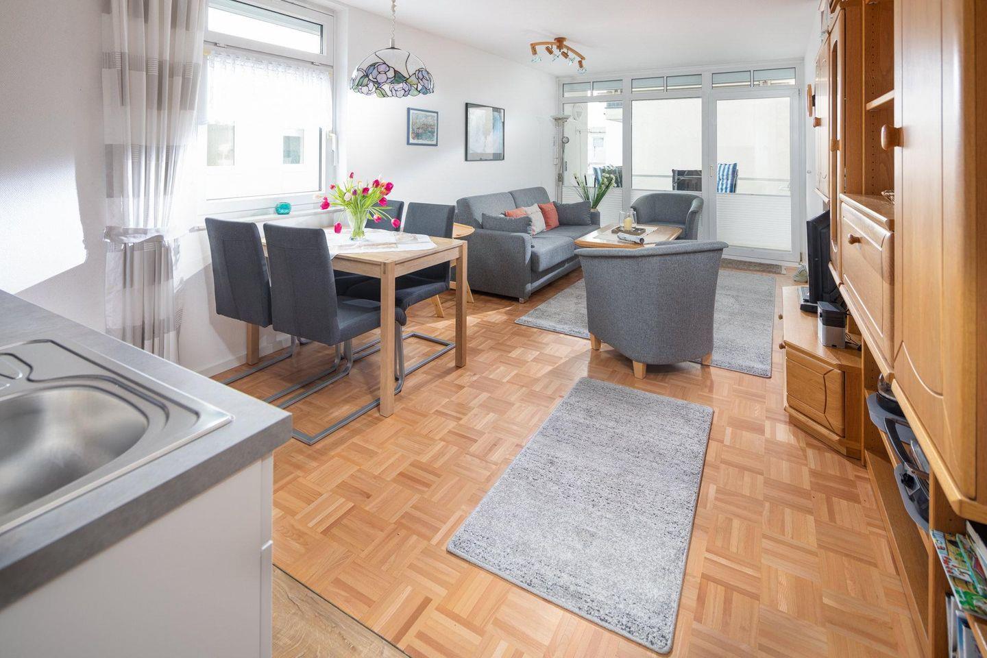 Die Ferienwohnung "Alte Schmiede" auf Norderney, Wohnung Nr. 8, erwartet Sie im ersten Stock eines gepflegten Gebäudes im Inselkern. Die Wohnung bietet durch einen bequemen Fahrstuhl einen komfortablen Zugang zum ersten Stock.