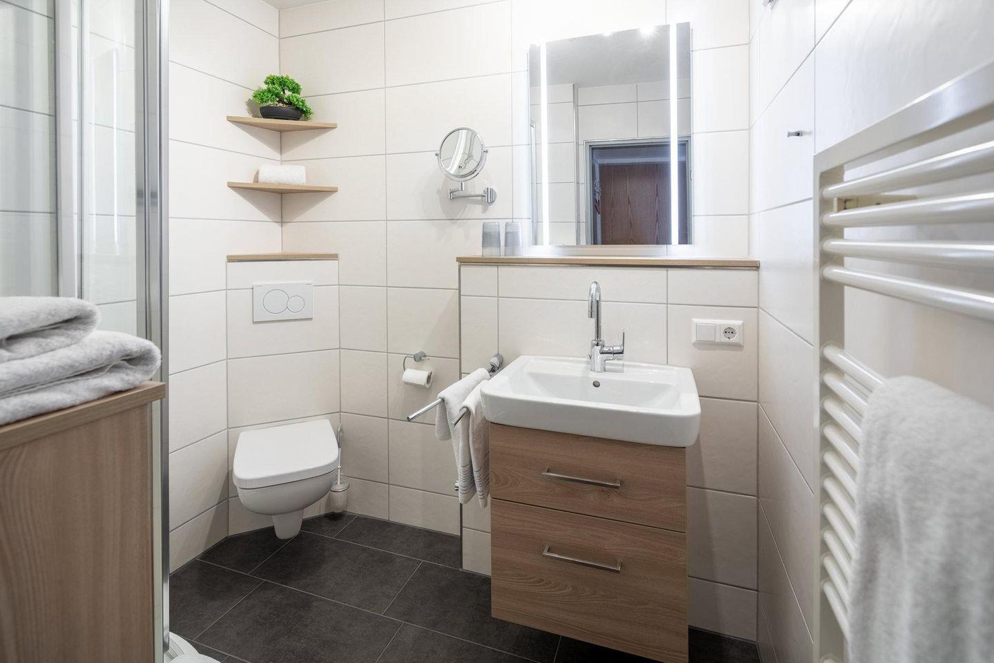 Das helle Badezimmer verfügt über eine Dusche und wurde mit einem Haartrockner ausgestattet. Die Wohnung ist mit zwei Fernsehern ausgestattet, der zweite Fernseher befindet sich im Schlafzimmer. Weiter steht Ihnen WLAN zur Verfügung. Zudem ist eine Waschmaschine vorhanden, was besonders für längere Aufenthalte von Vorteil ist.