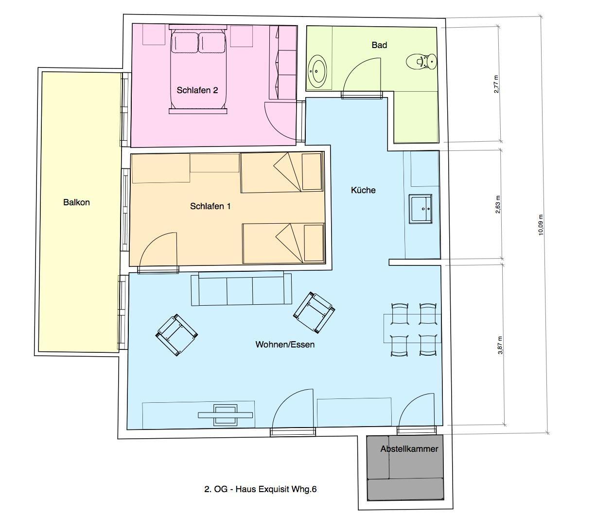 Die Ferienwohnung "Exquisit 6" befindet sich im Haus "Exquisit", welches im Jahr 2011 mit insgesamt 8 Ferienwohnungen errichtet wurde. Das Ferienhaus befindet sich in einer Seitenstraße, nur wenige Schritte vom Kurplatz und der Fußgängerzone entfernt. Diese 3-Zimmerwohnung mit ca. 76 qm liegt im zweiten Stock und ist barrierearm und ohne Stufen erreichbar, da ein Fahrstuhl vorhanden ist. Die Wohnung eignet sich für Familien, Freunde oder Gruppen.