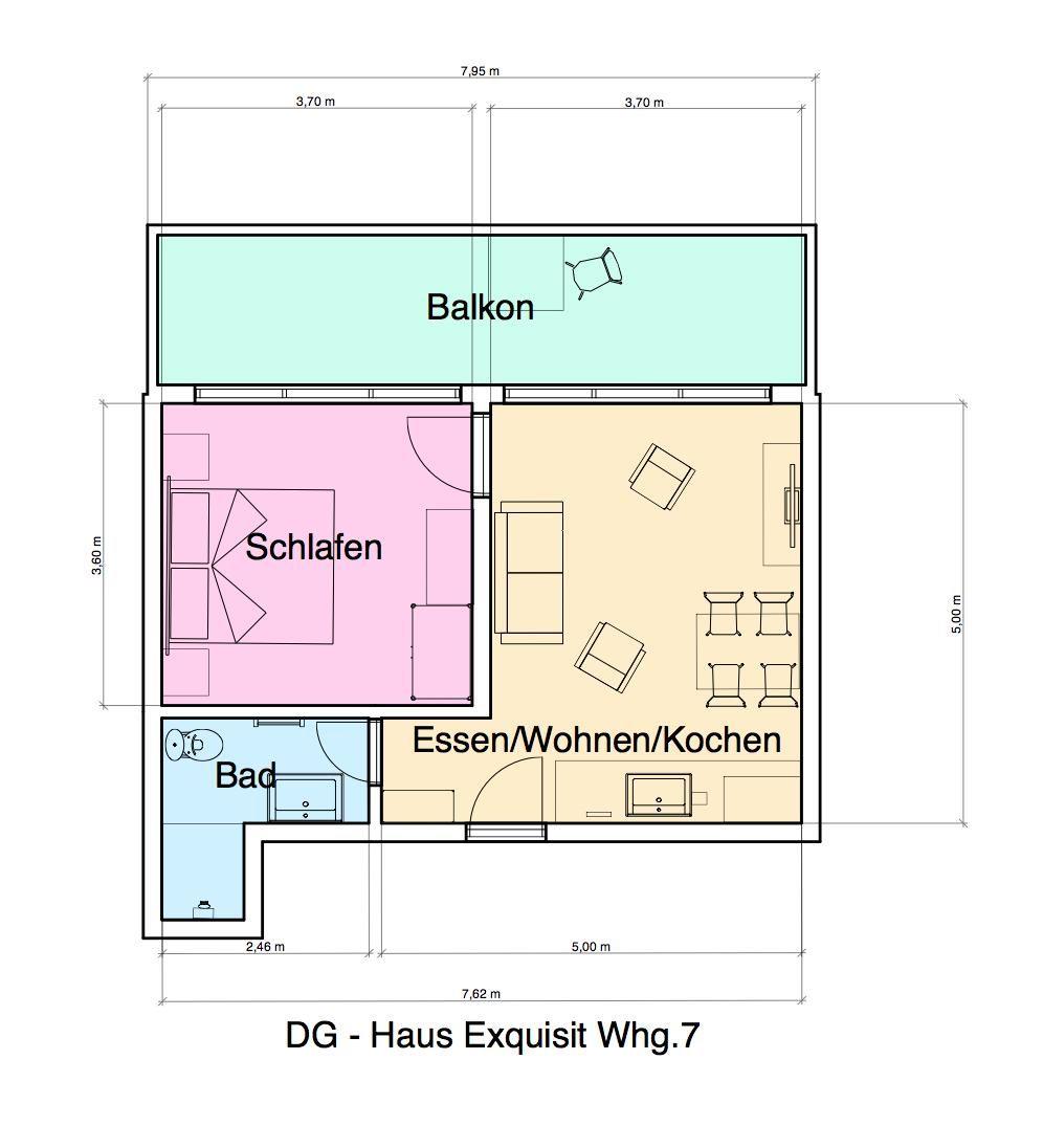 Die Ferienwohnung "Exquisit 7" befindet sich im Haus "Exquisit", welches im Jahr 2011 mit insgesamt 8 Ferienwohnungen errichtet wurde. Das Ferienhaus befindet sich in einer Seitenstraße, nur wenige Schritte vom Kurplatz und der Fußgängerzone entfernt. Diese 2-Zimmerwohnung mit ca. 53 qm liegt im dritten Stock und ist barrierearm und ohne Stufen erreichbar, da ein Fahrstuhl vorhanden ist. Die Wohnung bietet Platz für bis zu 2 Personen.