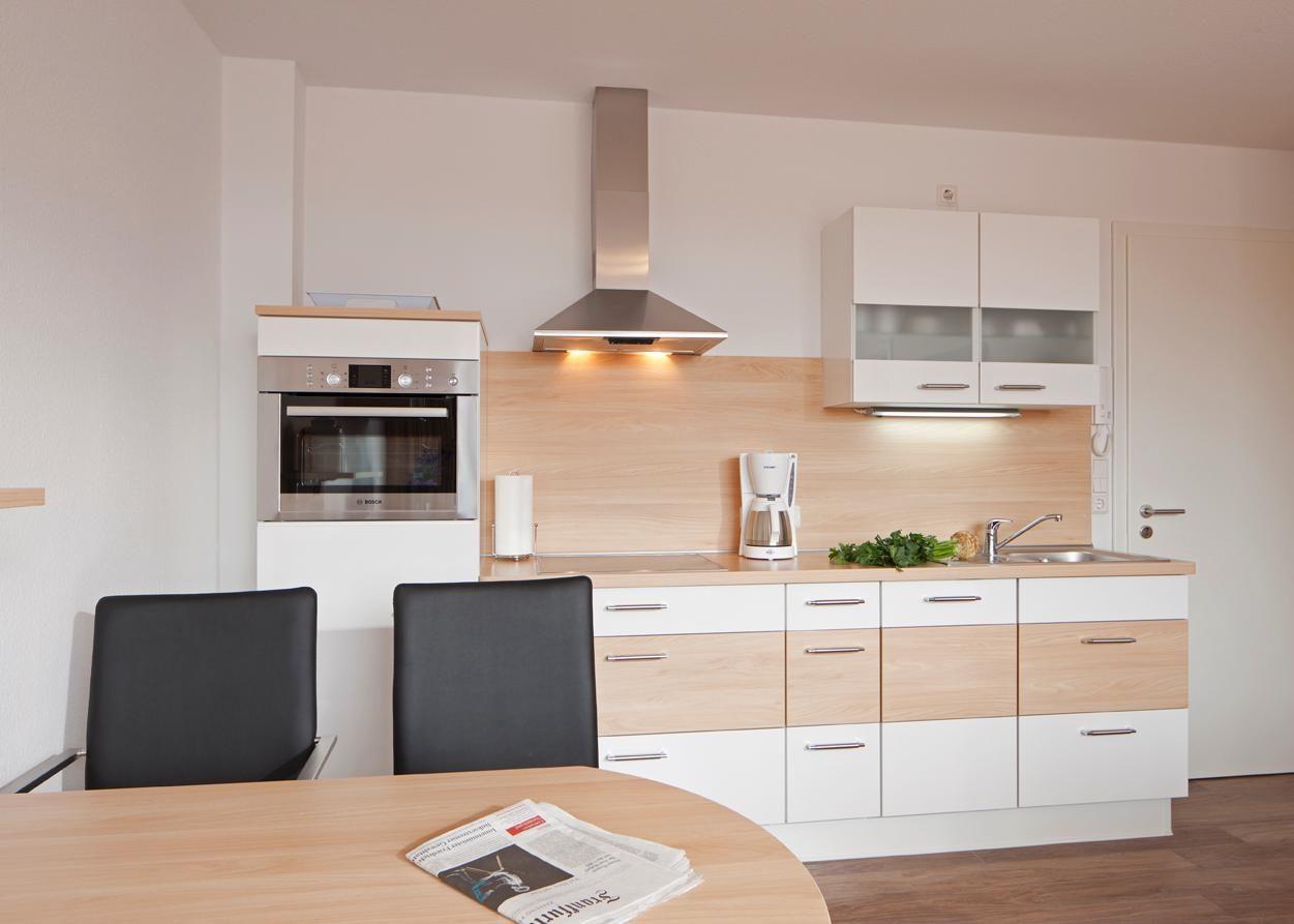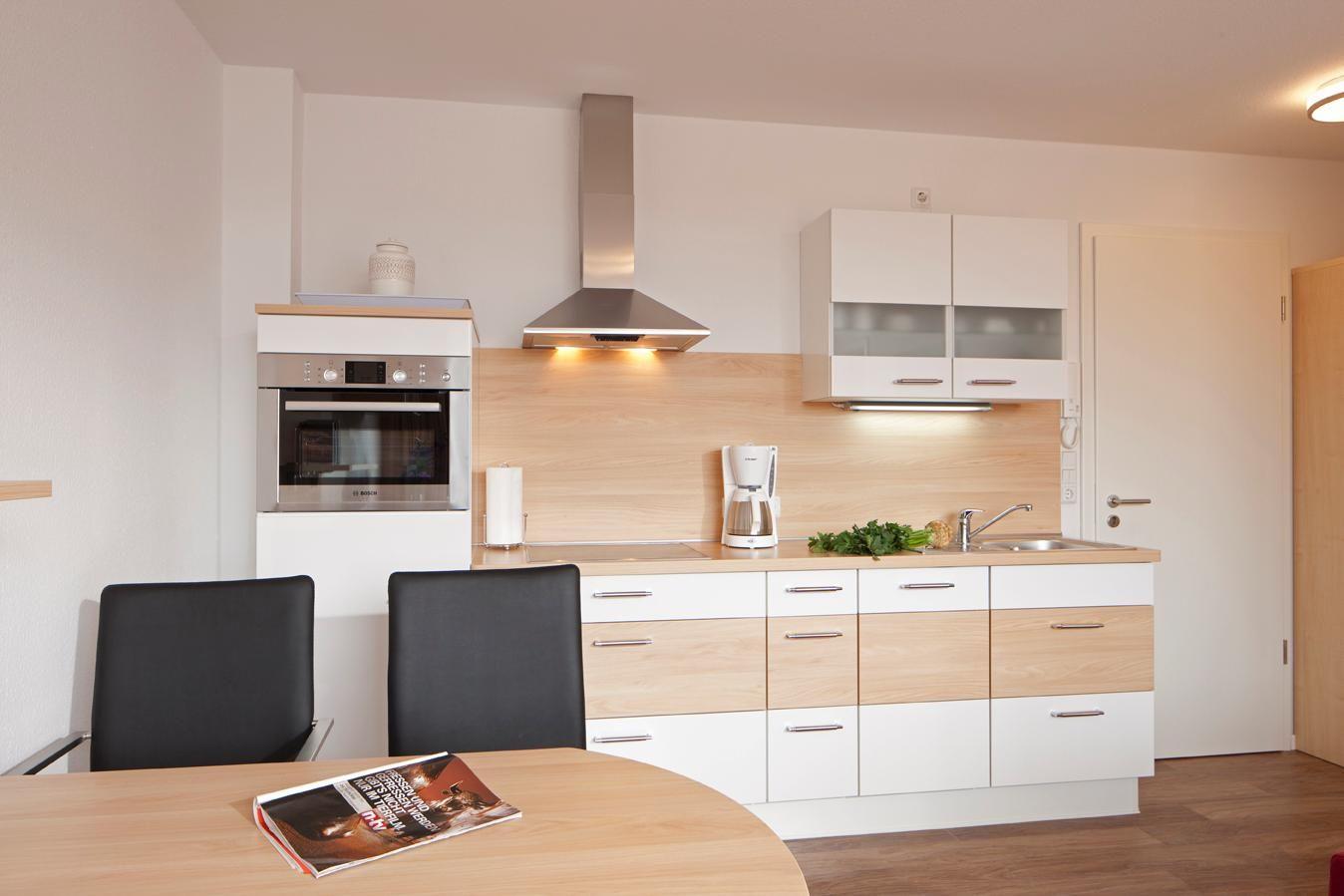 Die Wohnung ist modern eingerichtet. Das Wohnzimmer ist offen gestaltet mit einem Essbereich und einer offenen Küche. Die Küche ist vollständig unter anderem mit einer Spülmaschine, einem Backofen und einer Mikrowelle ausgestattet. Das Schlafzimmer ist mit einem Doppelbett eingerichtet. Das moderne Badezimmer verfügt über eine Dusche, Fußbodenheizung und Handtuchtrockner. Die Wohnung verfügt zudem über einen Südbalkon und über zwei TV-Geräte. Familien mit Kleinkindern sind herzlich willkommen. Ein Kinderbett und ein Kinderstuhl können beim Buchen dieser Wohnung hinzugebucht werden.
