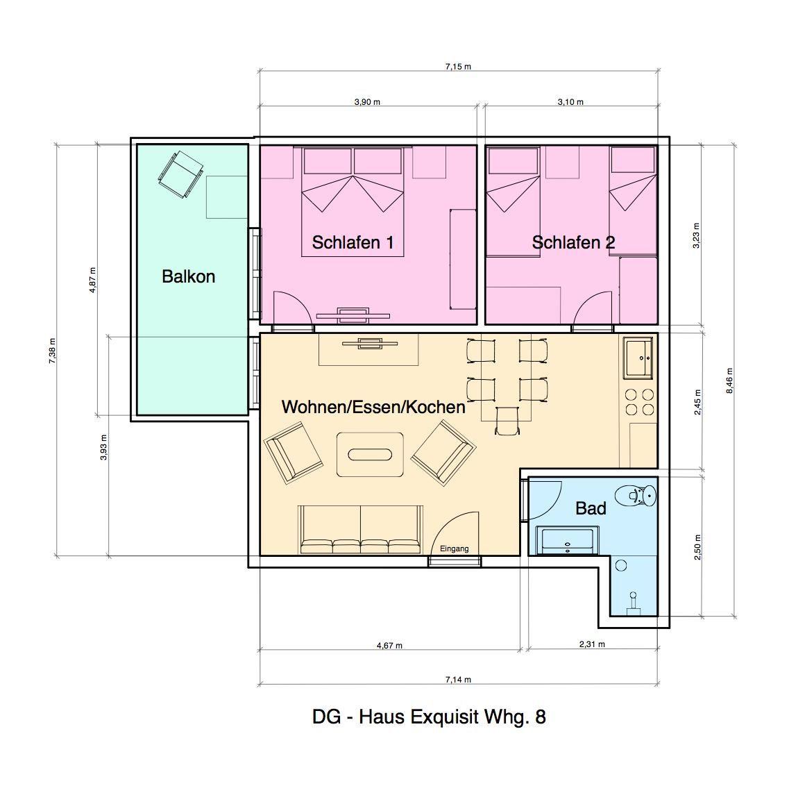 Die Ferienwohnung "Exquisit 8" befindet sich im Haus "Exquisit", welches im Jahr 2011 mit insgesamt 8 Ferienwohnungen errichtet wurde. Das Ferienhaus befindet sich in einer Seitenstraße, nur wenige Schritte vom Kurplatz und der Fußgängerzone entfernt. Diese 3-Zimmerwohnung mit ca. 51 qm liegt im dritten Stock und ist barrierearm und ohne Stufen erreichbar, da ein Fahrstuhl vorhanden ist. Die Wohnung bietet Platz für bis zu 4 Personen, auch Gruppen sind herzlich willkommen.