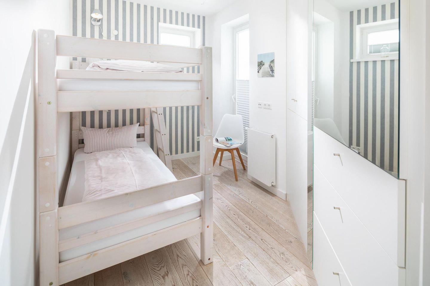 Das Haus ist aufgeteilt auf zwei Etagen. Bei der Innengestaltung wurde großen Wert auf natürliche Farben und hochwertige Materialien gelegt. Im Erdgeschoss des Hauses befinden sich eine Dusche/WC sowie ein separates WC. Es sind 3 Schlafzimmer vorhanden, zwei mit einem Doppelbett und eins mit einem Etagenbett. Der Wohnbereich mit offener Küche wurde modern gestaltet. Die moderne Küche ist voll ausgestattet mit einer Kaffeemaschine, einem Wasserkocher, einem Toaster, einer Mikrowelle sowie einem Ceranfeld mit vier Platten und einer praktischen Spülmaschine. Ein kleines Highlight ist die Dachterrasse. Hunde sind in dieser Unterkunft nicht erlaubt.