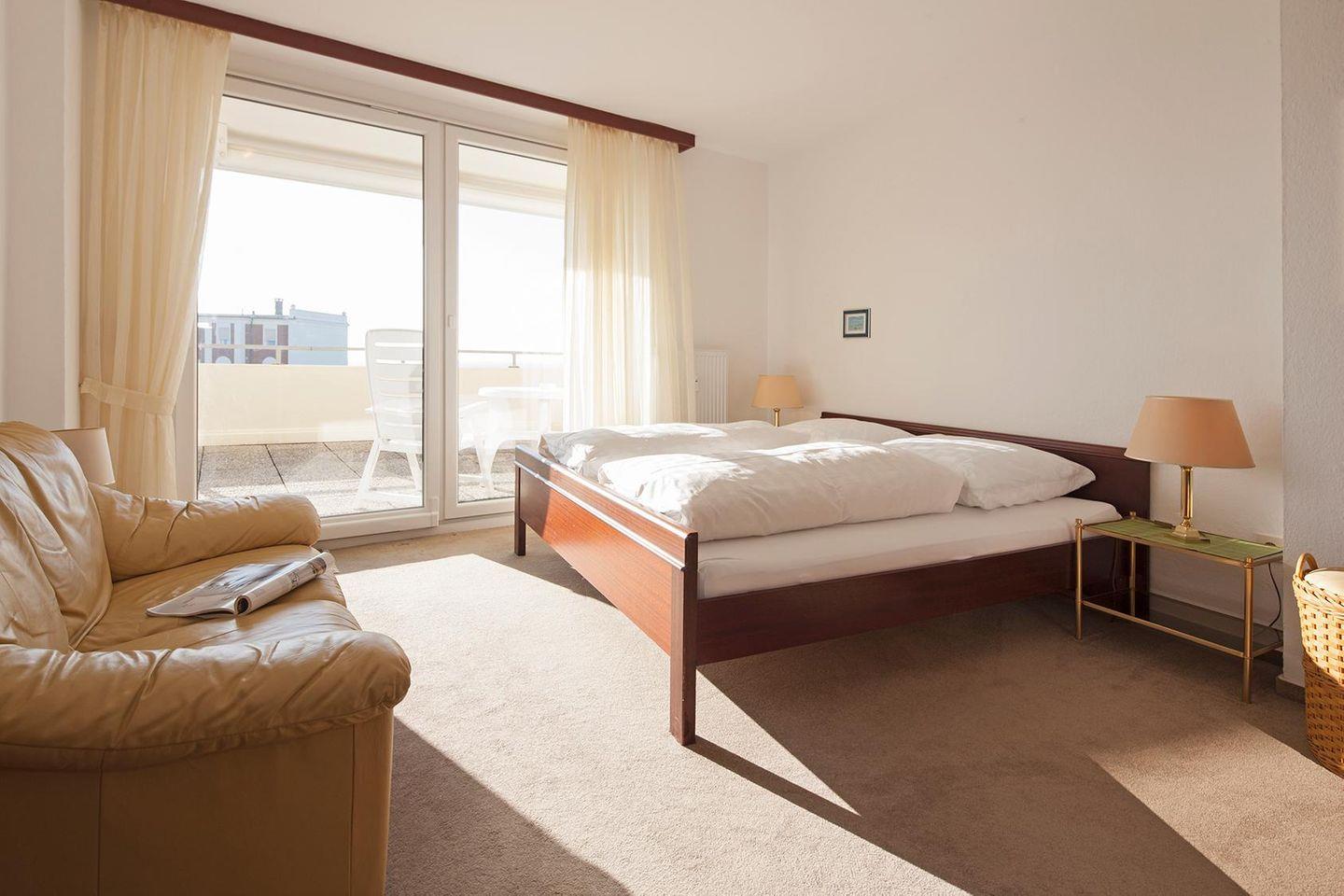Das Apartment Nr. 27 ist zur Seeseite gelegen und bietet eine der größten Terrassen des Hauses. Von der Terrasse kann man direkt auf das Meer schauen. Das 2-Raum-Apartment ist komfortabel eingerichtet. Es verfügt über ein Schlafzimmer mit einem Doppelbett und ein Wohnzimmer mit einer Sitzgarnitur. Die Küche mit Esstresen befindet sich im Bereich der Diele. Das Bad mit Badewanne und WC rundet die Ausstattung ab. Im Haus "Seelord" stehen zudem eine Waschmaschine und ein Wäschetrockner zur gemeinschaftlichen Nutzung zur Verfügung (ggfs. gegen Gebühr). Hunde sind in dieser Wohnung nicht erlaubt.
