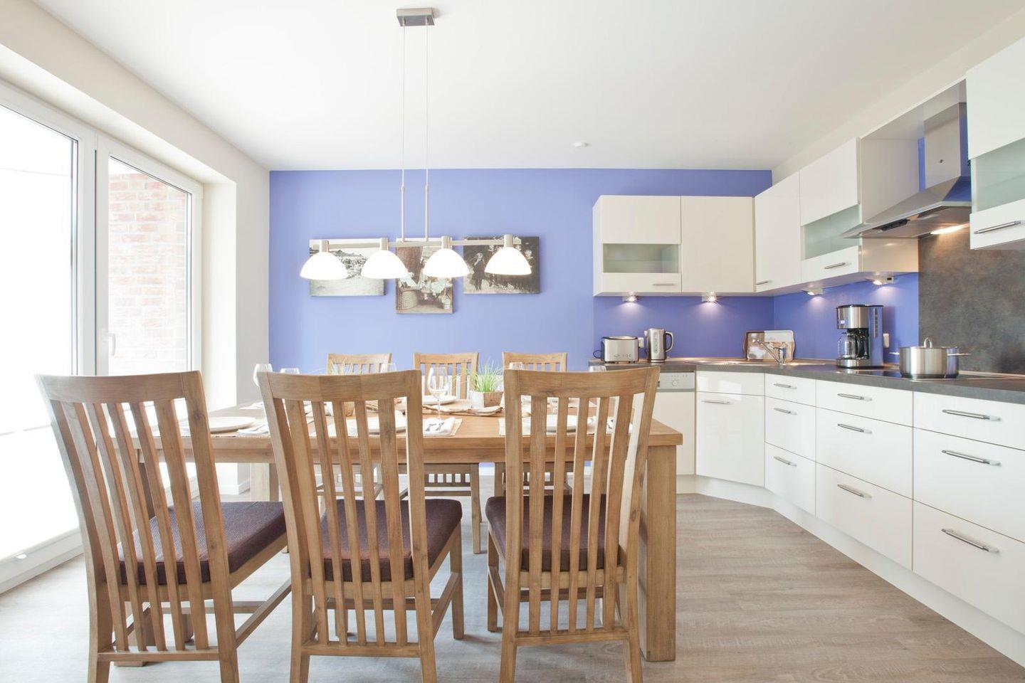 Die Ferienwohnung "Dünenveilchen" (im Haus "Inselzauber") erstreckt sich über zwei Etagen, die durch eine Treppe innerhalb der Wohnung verbunden sind. Dieses Apartment bietet Platz für bis zu vier Personen, was es zu einer guten Wahl für Familien oder kleine Gruppen macht. Es ist zu beachten, dass Gruppenreisen oder Clubaufenthalte in dieser Wohnung leider nicht möglich sind.