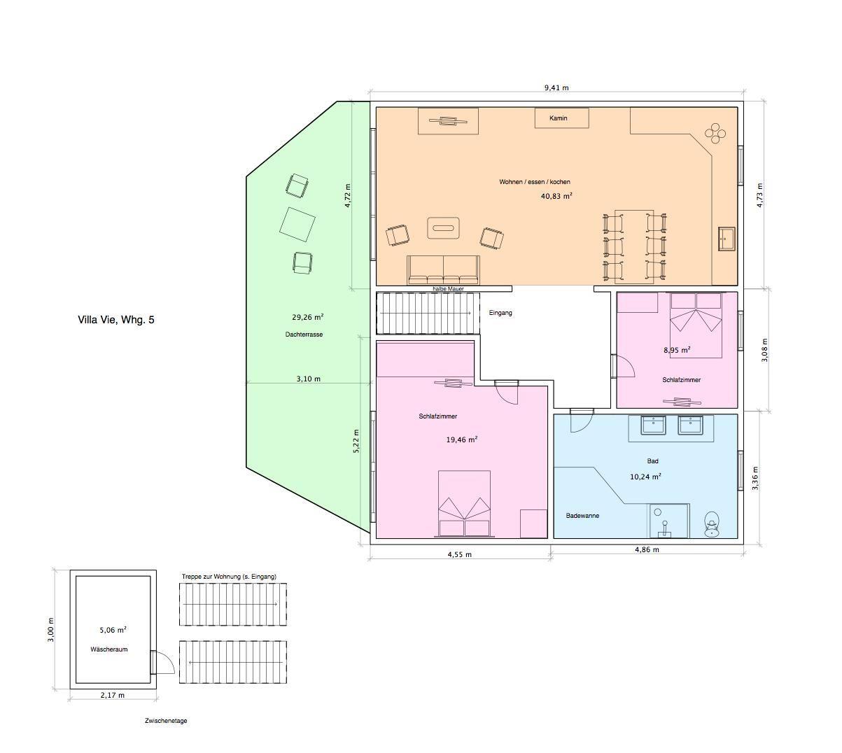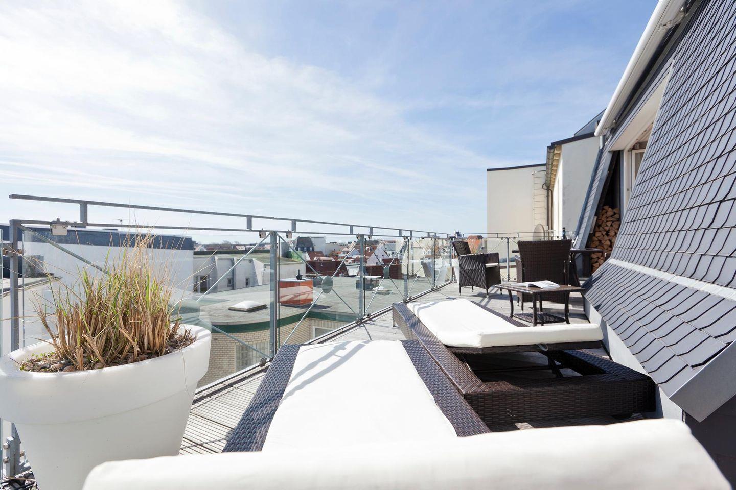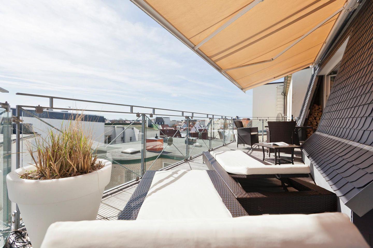 Die Ferienwohnung "Maison Penthouse Nº 5" befindet sich in dem Haus "Villa Vie". Das Haus liegt in der Knyphausenstraße. Die "Maison Penthouse Nº 5" erstreckt sich über 119 Quadratmeter und bietet Platz für bis zu fünf Personen. Das macht sie ideal für Familien oder Gruppen von Freunden. Bis zum Strand sind es nur ca. 250m. Auch einige Restaurants, Cafés und andere Einkaufsmöglichkeiten sind nur wenige Gehminuten entfernt.