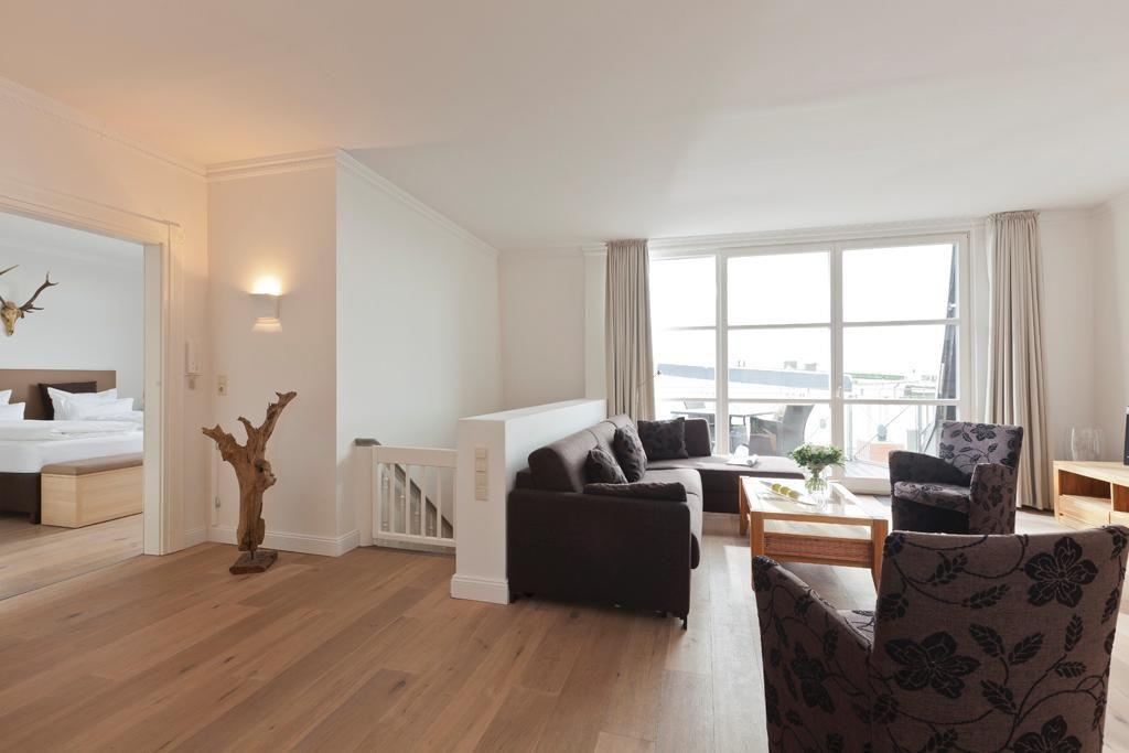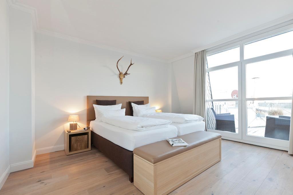 Die Wohnung besticht durch ihre freundliche und designorientierte Einrichtung, jedes Detail wurde sorgfältig ausgewählt. Die Räume sind hell und offen gestaltet, mit hochwertigen Möbeln und modernen Annehmlichkeiten. Die Wohnung verfügt über zwei Schlafzimmer, beide sind mit einem Doppelbett ausgestattet. Das großzügige Badezimmer bietet eine Dusche (inklusive Regendusche) und eine Badewanne sowie zwei Waschbecken. Das Highlight der Luxus-Ferienwohnung ist zweifellos die Süd-Dachterrasse. Das Wohnzimmer ist mit einer Sitzecke (inklusive Schlafcouch) und einem Kamin ausgestattet. In dieser Wohnung fühlt sich auch der vierbeinige Freund wohl, denn die Ferienwohnung heißt auch Hunde herzlich willkommen. Erlaubt ist maximal 1 Hund (Höhe maximal kniehoch). Die Hundewiese befindet sich in der Nähe des Fährhafens (kein Leinenzwang).