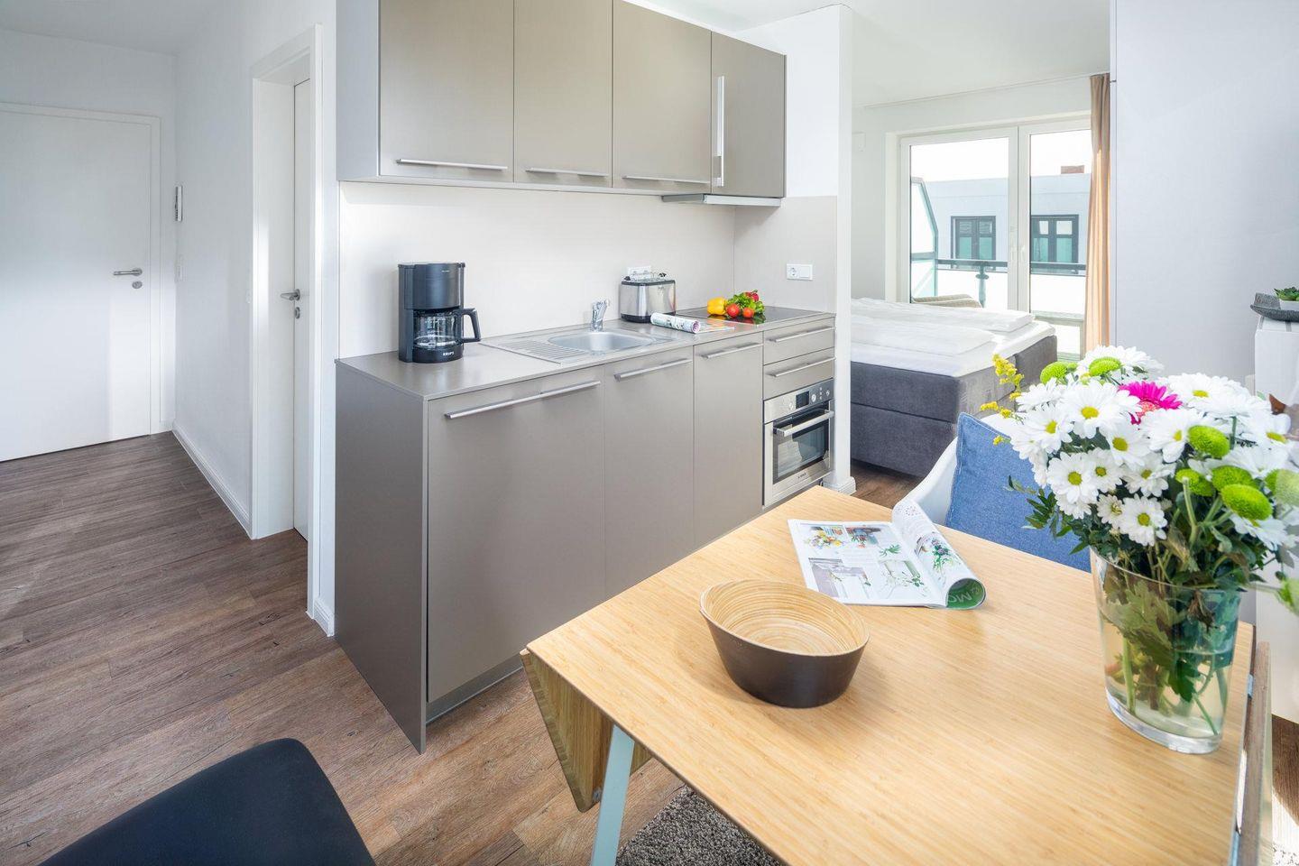 Bei der Innenausstattung wurde Wert auf natürliche Farben gelegt. Der Wohn-Schlafbereich ist mit einem Doppelbett ausgestattet. Das Badezimmer ist mit einer Dusche eingerichtet. Ein Highlight der Wohnung "Meeresloft 7" ist der Balkon nach Süden (blick- und windgeschützt). Eine Waschmaschine und ein Wäschetrockner stehen im Haus (zur gemeinschaftlichen Nutzung ggf. gegen Gebühr) zur Verfügung. Hier darf auch der vierbeinige Freund mitkommen, denn die Ferienwohnung heißt auch Hunde herzlich willkommen. Erlaubt ist maximal 1 Hund (Höhe maximal kniehoch). Die Hundewiese befindet sich in der Nähe des Fährhafens (kein Leinenzwang).