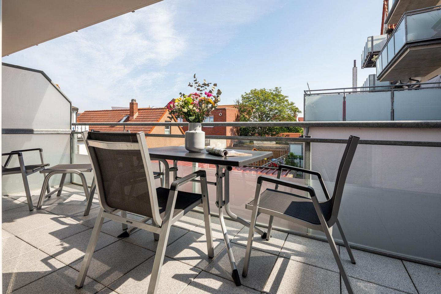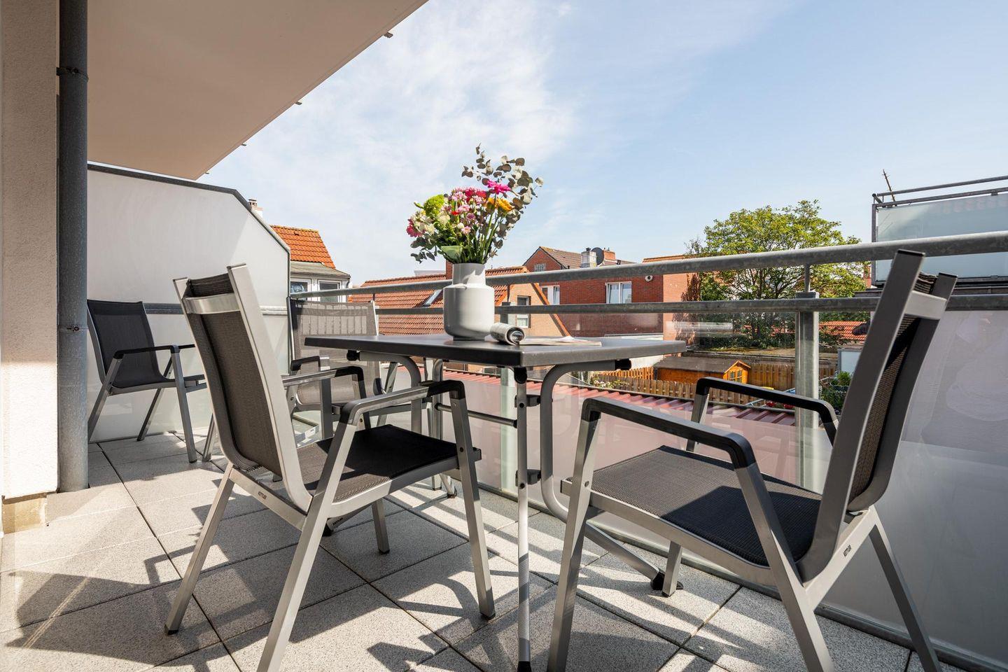 Weiter verfügt die Wohnung über einen Südbalkon und eine Dachterrasse mit Nordausrichtung (Grillen auf dem Balkon und der Dachterrasse ist nicht gestattet). Die Ferienwohnung "Applaus" ist mit einem Aufzug erreichbar und somit barrierefrei zugänglich. Für die Aufbewahrung von Fahrrädern steht ein Gemeinschaftsabstellraum zur Verfügung.