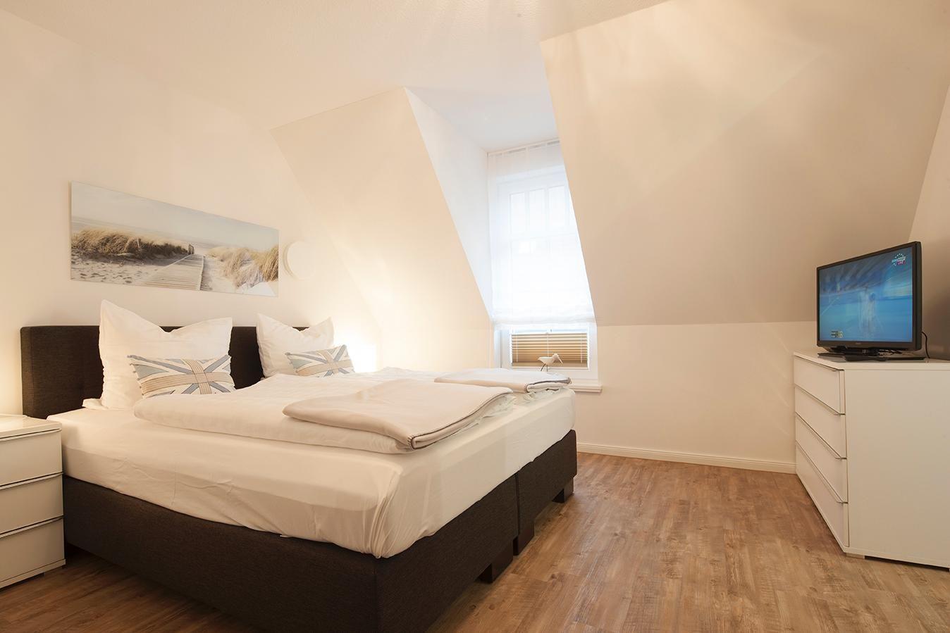 Die Ferienwohnung "Villa Brunnenhof 4" befindet sich in der ersten Etage sowie im Spitzboden der Villa "Brunnenhof". Die Wohnung wurde im Herbst 2013 fertiggestellt und liegt in der Brunnenstraße. Auf insgesamt 49 Quadratmetern bietet die Wohnung Platz für bis zu 5 Personen. Der Weststrand und das Kurzentrum mit Kurplatz und Thalassozentrum liegen gleich um die Ecke.