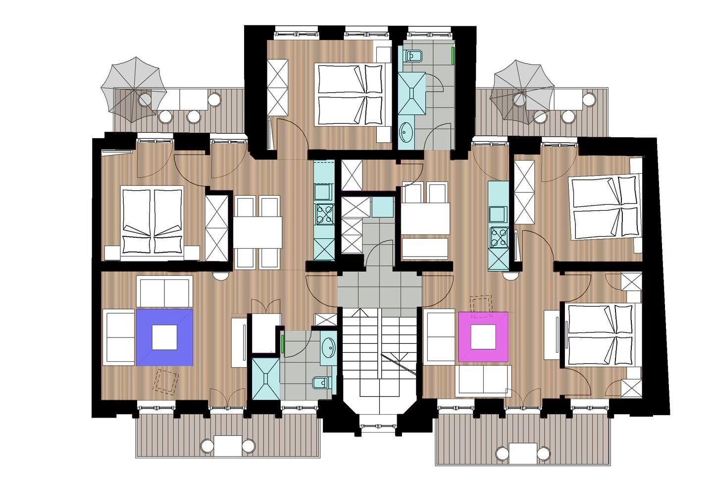Die Wohnung ist hell und modern eingerichtet und verfügt über zwei Schlafzimmer mit Doppelbetten. Die Küche ist voll ausgestattet und hat Platz für einen Essbereich. Das Badezimmer ist modern ausgestattet und verfügt über eine Dusche und einen Handtuchtrockner. Vom Wohnzimmer aus kann man den Balkon (Stil: Dachterrasse) betreten. Im Haus "Lara" steht den Bewohnern eine Waschmaschine zur gemeinschaftlichen Nutzung (mit Münzeinwurf) zur Verfügung. Haustiere sind hier nicht erlaubt.