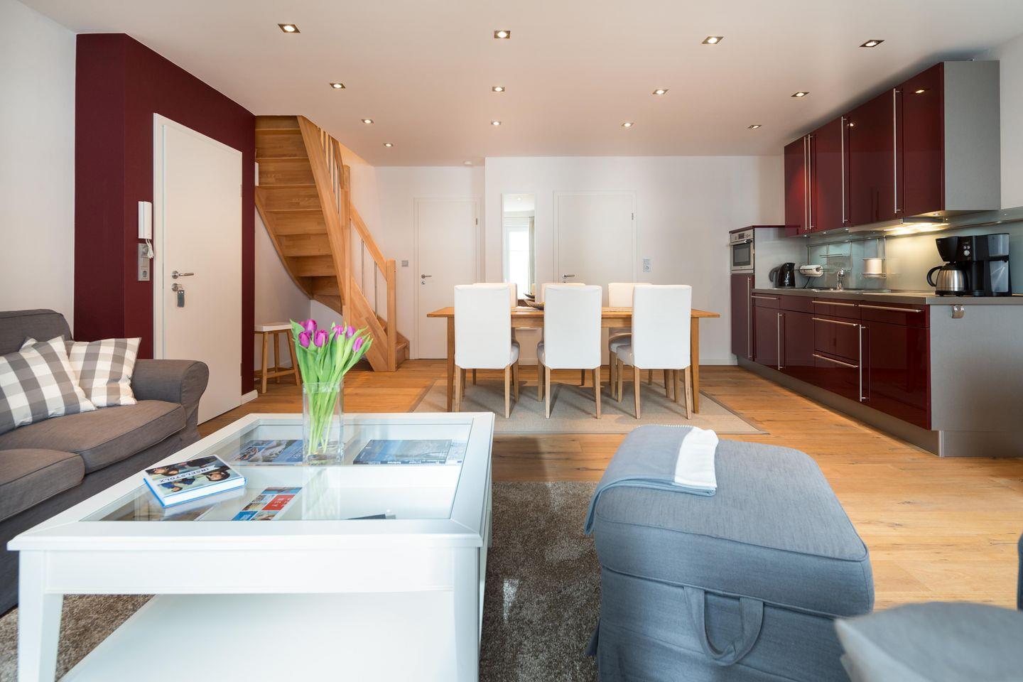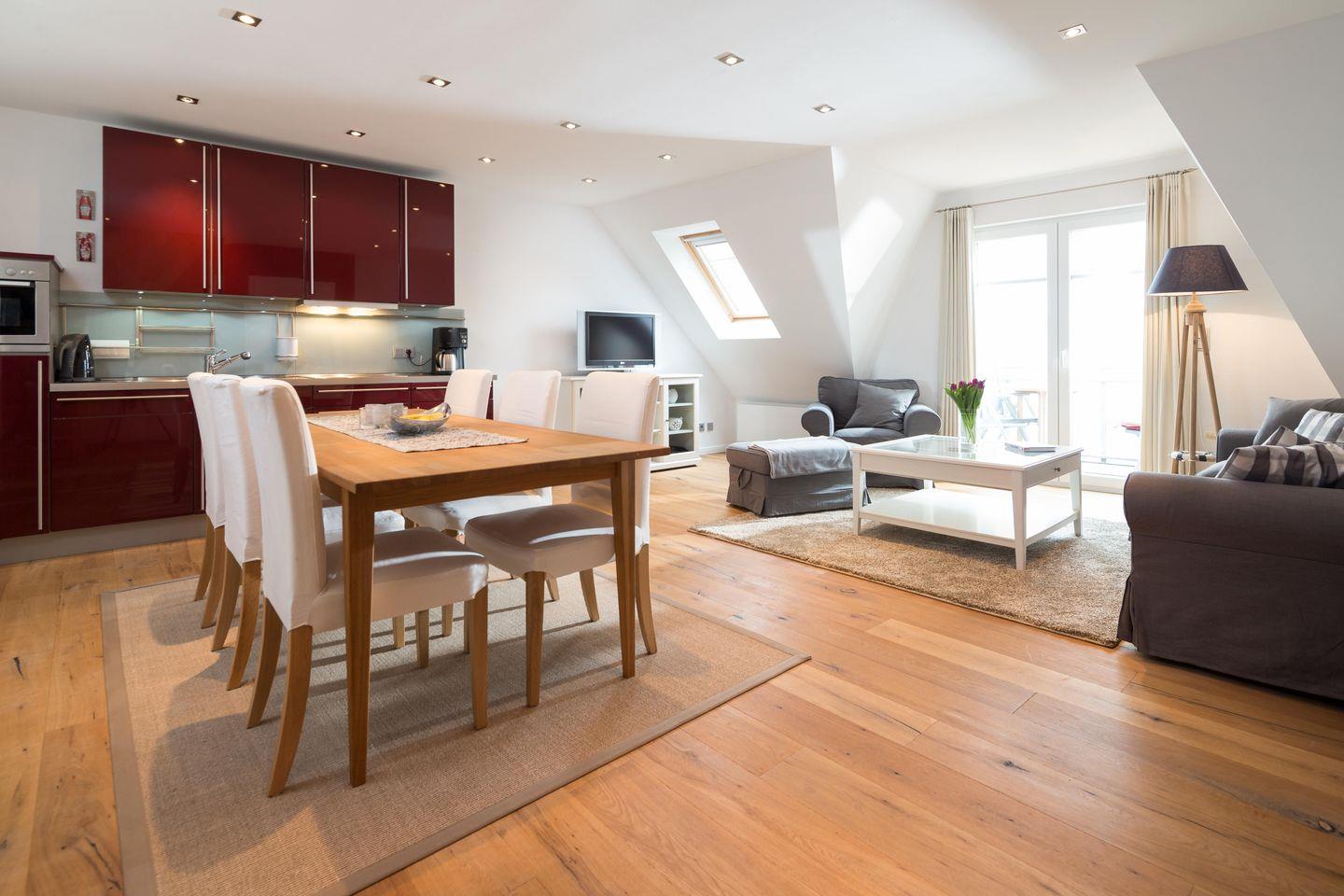 Die Ferienwohnung "Lüttje Loft" liegt im Damenpfad. Die Wohnung befindet sich im 2. Stock und im darüberliegenden Dachgeschoss eines dreigeschossigen Hauses. Mit einer Bodenfläche von ca. 78 qm bietet das "Lüttje Loft" Platz für bis zu 4 Personen. Der Strand, hier: Weststrand, liegt in unmittelbarer Nähe (ca. 130m) entfernt. Auch zahlreiche Restaurants, Cafés oder andere Einkaufsmöglichkeiten sind in wenigen Gehminuten erreichbar.