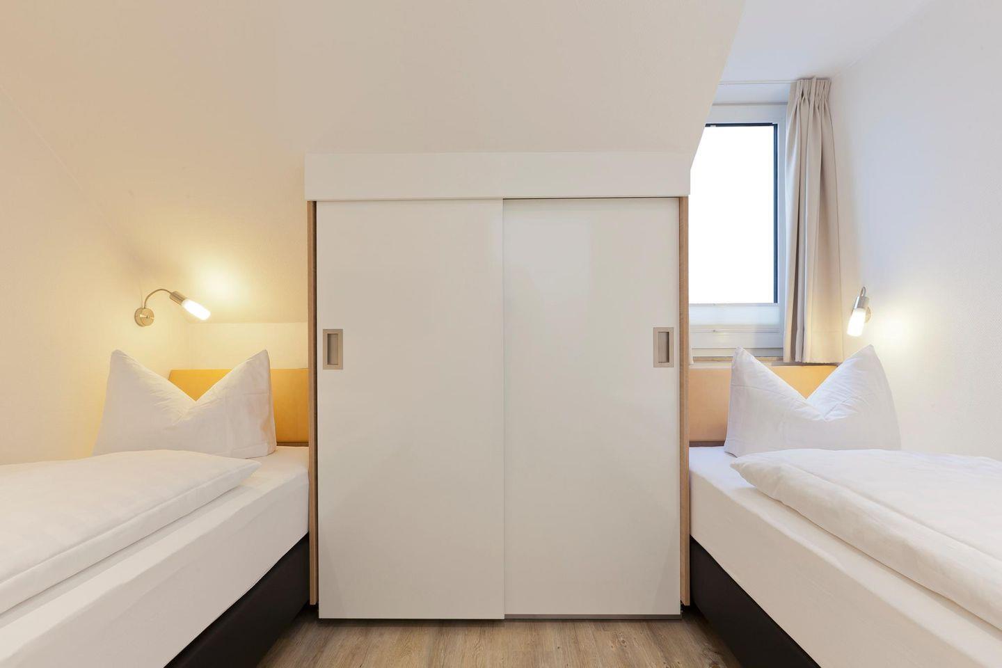 Die Wohnung "Petrina 9" bietet mit ihren zwei Schlafzimmern ausreichend Platz für bis zu vier Personen. Ein Schlafzimmer ist mit einem Doppelbett ausgestattet, während das zweite Schlafzimmer über zwei Einzelbetten verfügt. Das Wohnzimmer bietet eine Sitzecke. Die angrenzende Küchenecke ist voll ausgestattet und bietet zudem einen Essbereich. Das Badezimmer mit Dusche und WC ist modern gestaltet. Waschmaschine und Wäschetrockner befinden sich im Haus und stehen (für die gemeinschaftliche Nutzung gegen Münzeinwurf) zur Verfügung, was besonders für längere Aufenthalte von Vorteil ist. Hunde sind in dieser Ferienwohnung nicht erlaubt.