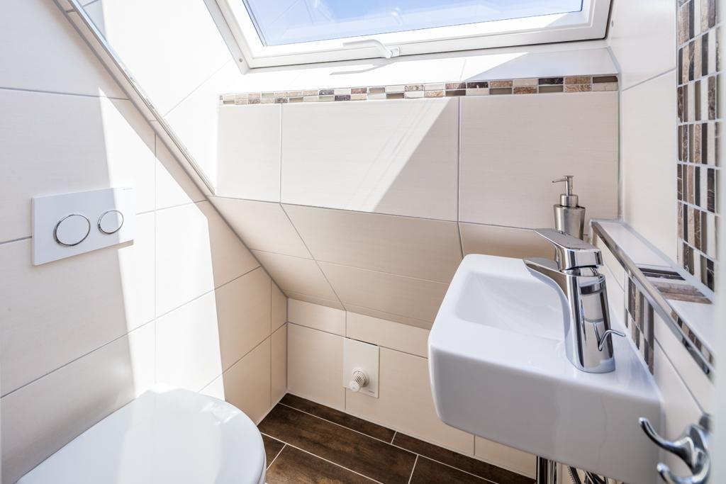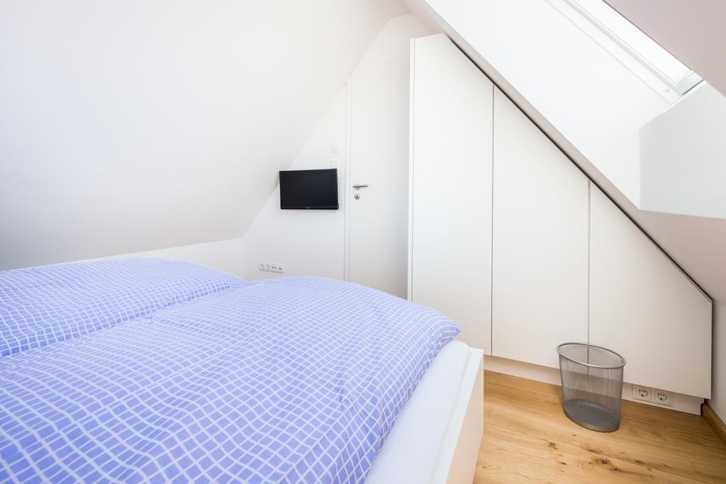 Die Ferienwohnung "Hus op Eck" befindet sich in der ruhigeren Wohngegend entlang der Nordhelmstraße, die in unmittelbarer Nähe zum Nordstrand verläuft. Die Wohnung erstreckt sich über das erste Obergeschoss und das Dachgeschoss des Gebäudes. Die 75 Quadratmeter große Wohnung bietet Platz für bis zu 6 Personen.