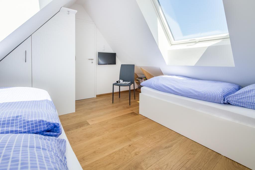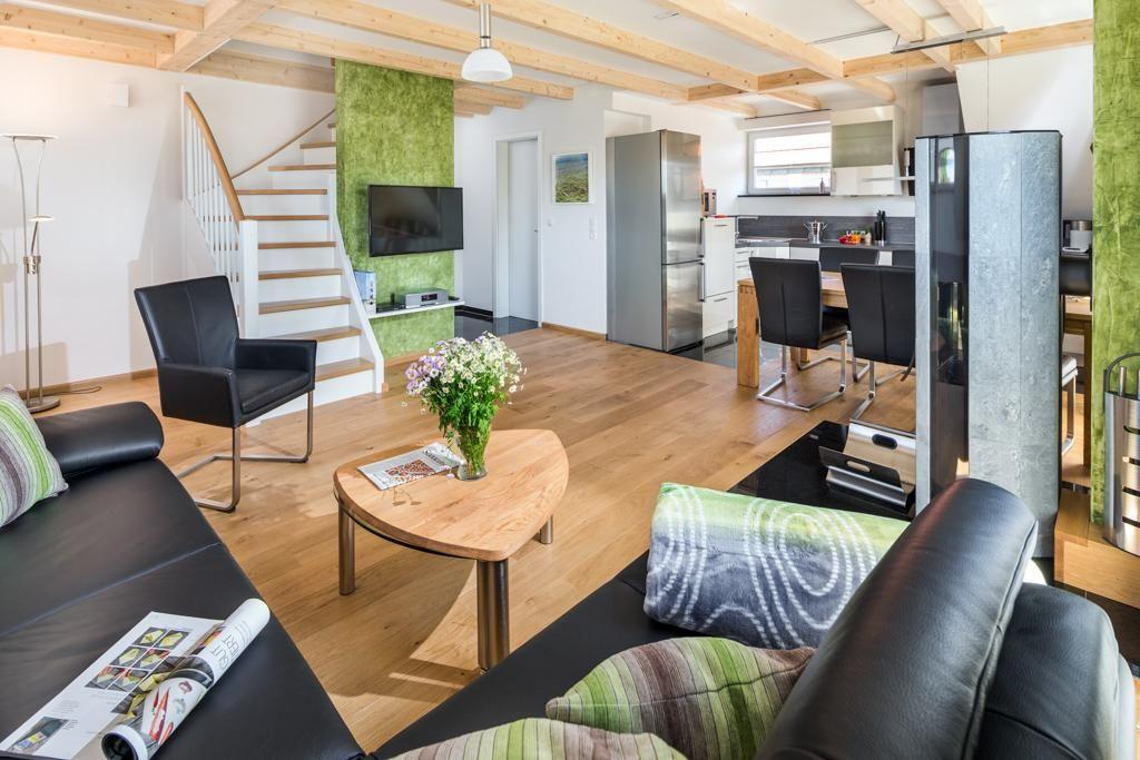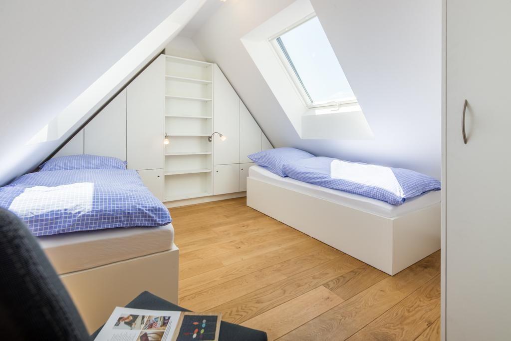 In der Wohnung befindet sich ein geräumiger und heller Wohn-/Ess- und Küchenbereich. Insgesamt gibt es drei Schlafzimmer. Im ersten Obergeschoss gibt es ein Schlafzimmer mit einem Doppelbett. Im Dachgeschoss befinden sich zwei weitere Schlafräume: eines mit einem Doppelbett und ein weiteres mit zwei Einzelbetten, die bei Bedarf zu einem Doppelbett umgewandelt werden können. Ein Schlafzimmer im Dachgeschoss bietet sogar einen Panoramablick auf die nahegelegene Dünenlandschaft. Die Wohnung verfügt über insgesamt zwei Badezimmer. Ein Badezimmer ist mit einer Badewanne, einer Dusche und einem WC ausgestattet, während das andere Badezimmer über eine Dusche und ein WC verfügt. Zusätzlich gibt es ein separates WC. An kalten Tagen sorgt ein Kaminofen für Wärme (wenn gewünscht).