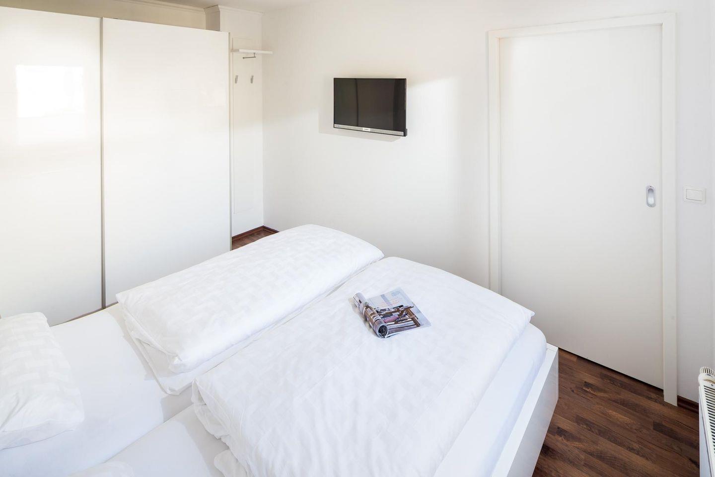 Die Wohnung verfügt über ein Schlafzimmer mit einem Doppelbett und ein Wohnzimmer mit einem ausklappbaren Doppelbett. Die separate Küche ist mit modernen Geräten ausgestattet, darunter eine Spülmaschine, eine Mikrowelle und ein Backofen. Das Badezimmer verfügt über ein Außenfenster und ist mit einer Dusche, einem WC und einem Handwaschbecken ausgestattet. Zur Wohnung gehört eine Veranda, diese ist vor dem Haupteingang. Hier ist Platz für Räder und einen Cruizer. Haustiere sind in dieser Wohnung nicht erlaubt.