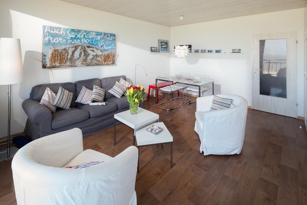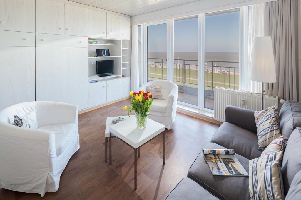 Die Wohnung wurde kürzlich umfassend modernisiert. Der Wohn-Schlafraum ist mit einem Schrankbett (zwei nebeneinander stehende Einzelbetten) ausgestattet. Das Schrankbett, das sich tagsüber unauffällig verstauen lässt, sorgt für genug Bewegungsfreiheit innerhalb der Wohnung. Weiter verfügt die Wohnung über eine neue Küchenzeile und ein neues Bad. Im Apartmenthaus "Kaiserhof" stehen den Bewohnern eine Waschmaschine und ein Wäschetrockner (beide mit Münzeinwurf) zur Verfügung. Zusätzlich steht eine Sauna bereit, die ebenfalls gegen Münzeinwurf nutzbar ist. Es ist zu beachten, dass das Schwimmbad aufgrund eines technischen Defektes geschlossen ist. Fahrräder können vor dem Haus (Nordseite) oder im Fahrradraum abgestellt werden. Hier darf auch der vierbeinige Freund mitkommen, denn die Ferienwohnung heißt auch Hunde herzlich willkommen. Erlaubt ist maximal 1 Hund (Höhe maximal kniehoch). Die Hundewiese befindet sich in der Nähe des Fährhafens (kein Leinenzwang).